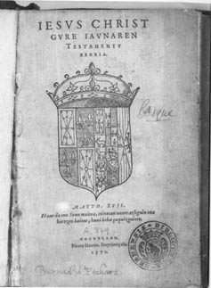 Bernard d'Etchart-en " Iesus Christ gure jaunaren Testamentu Berria " liburuaren azala (1571) --