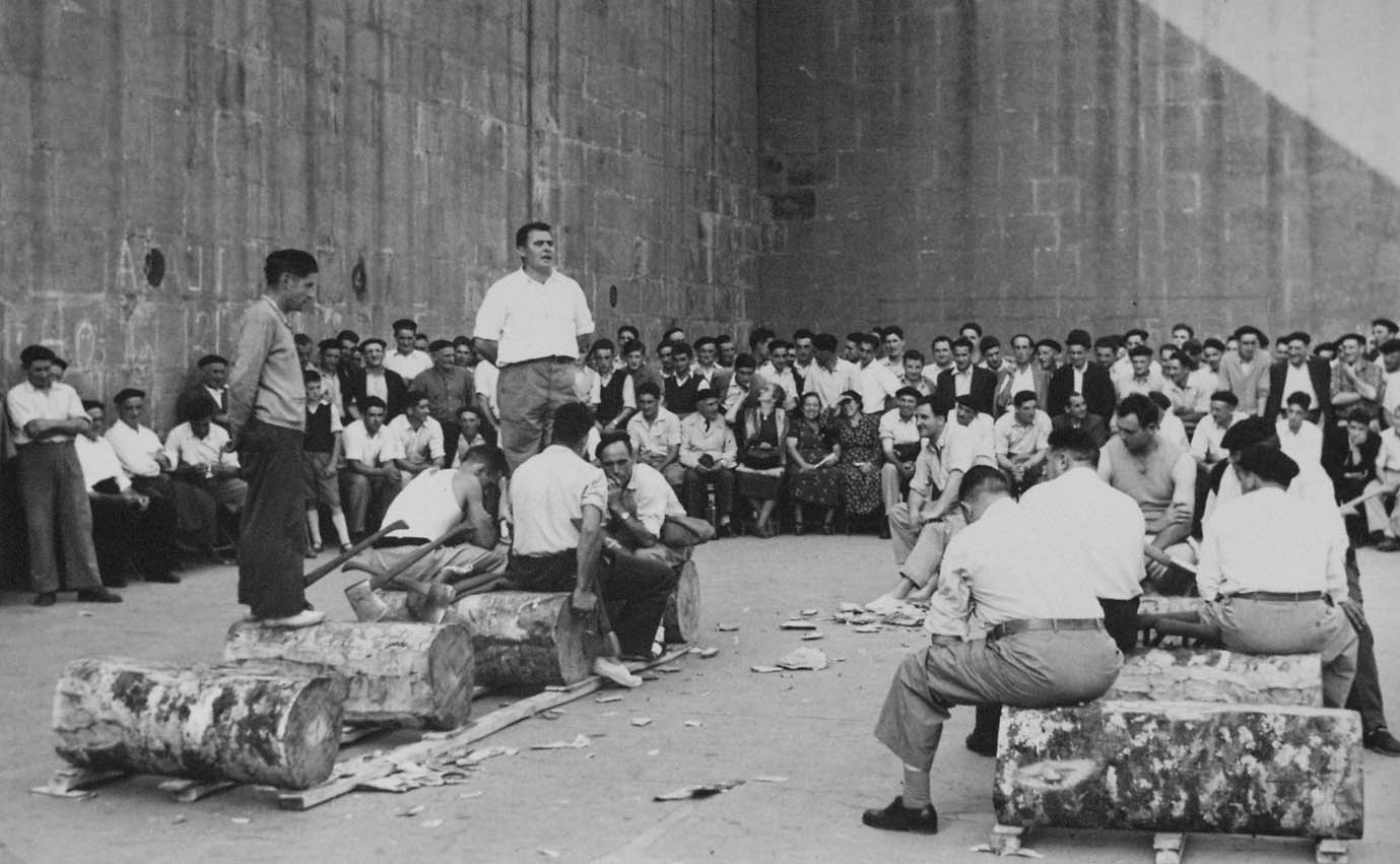 Zumarragako frontoian, entzuleria inguruan, trontzo-zerran egin ostean xx kantuan eta Lazkao Txiki aldamenean --
