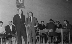 Oholtzan, xx kantuan; aldamenean zutik, Alfonso Irigoien gai-jartzailea. Atzean eserita, Lazkao Txiki eta xx. Eskuman mahaian eserita, Euskaltzaindiako epaileak. --