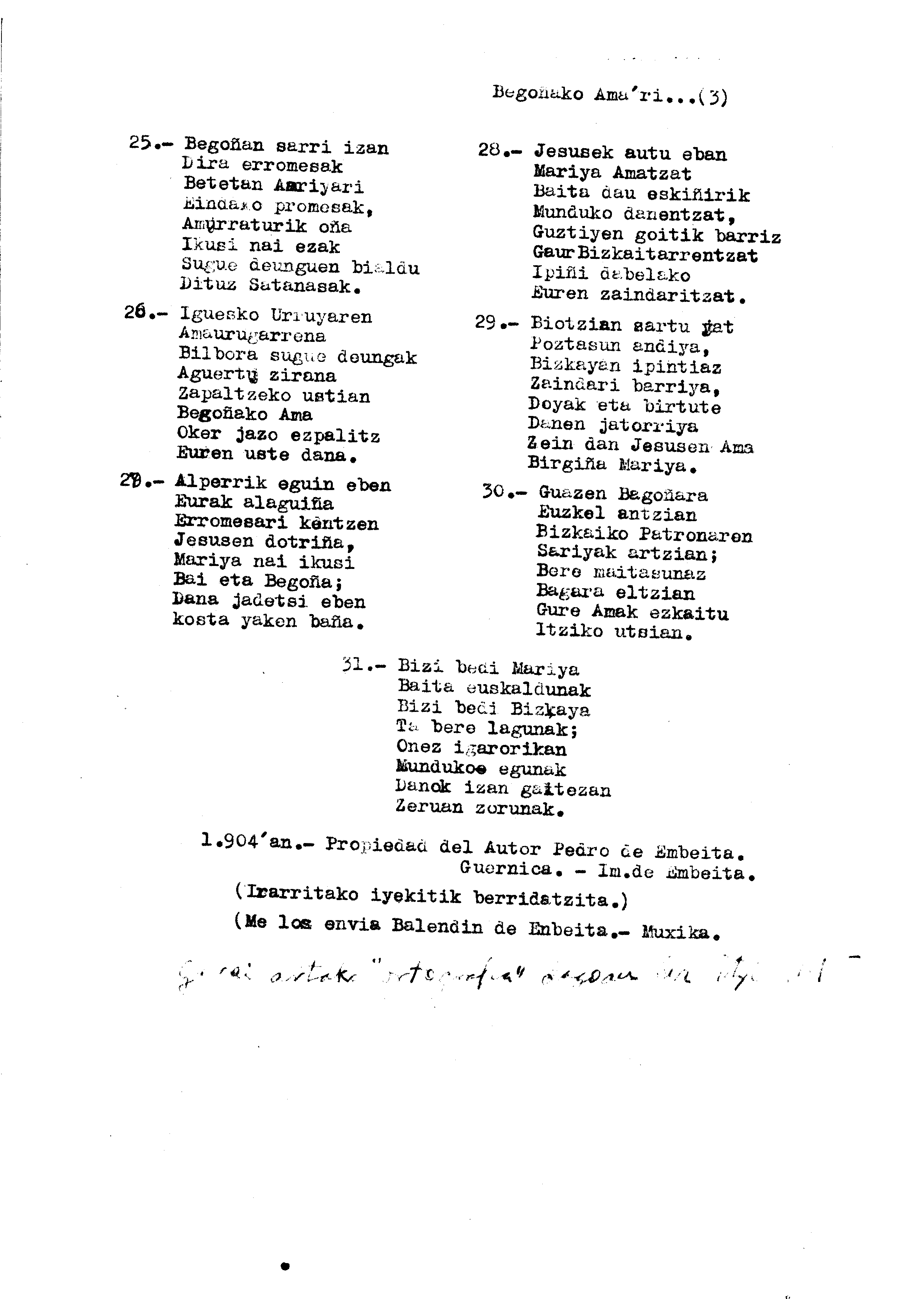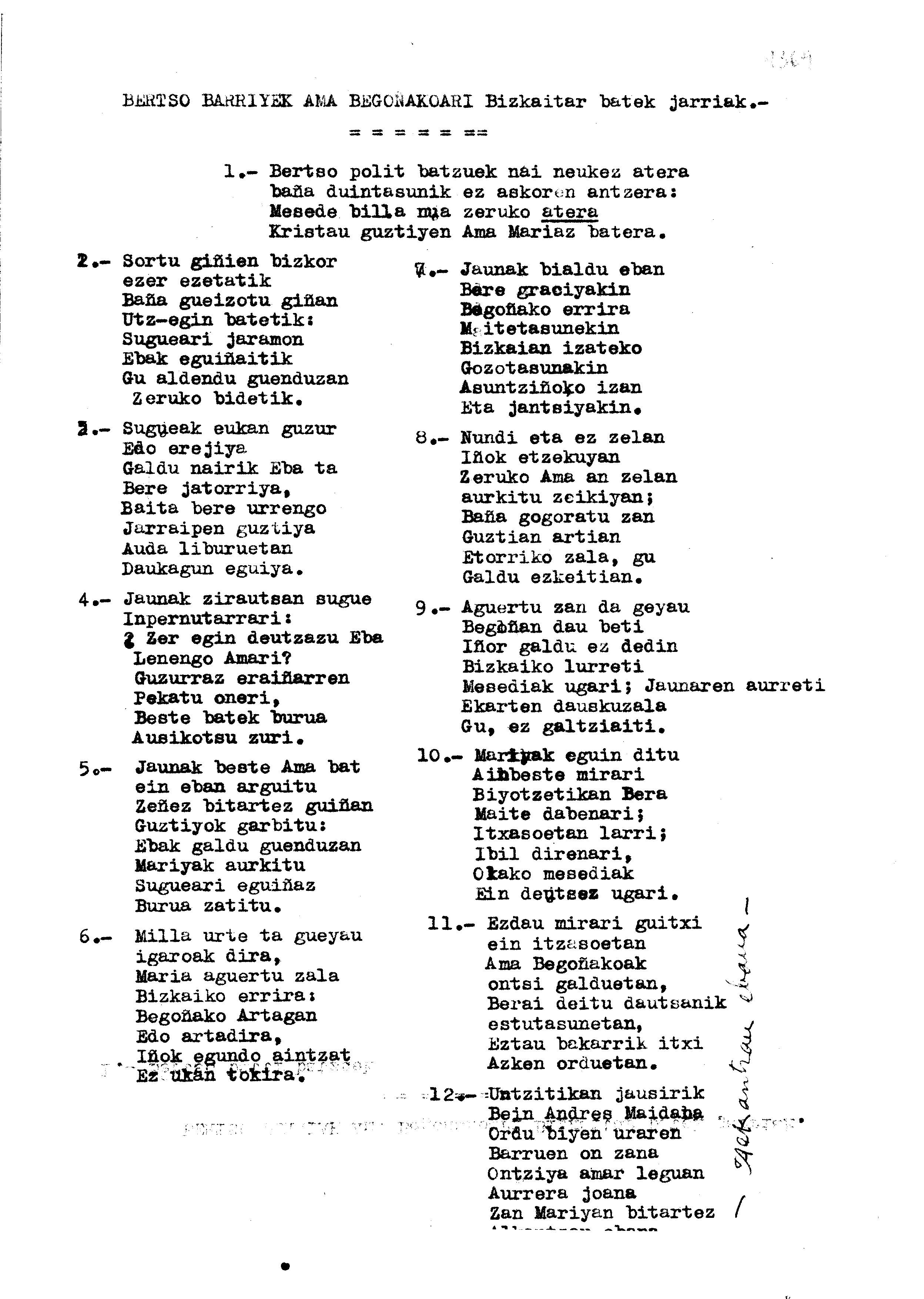 Bertsolaritza. Bertso paperak: Izenburua: Bertso barriyek ama Begoñakoari