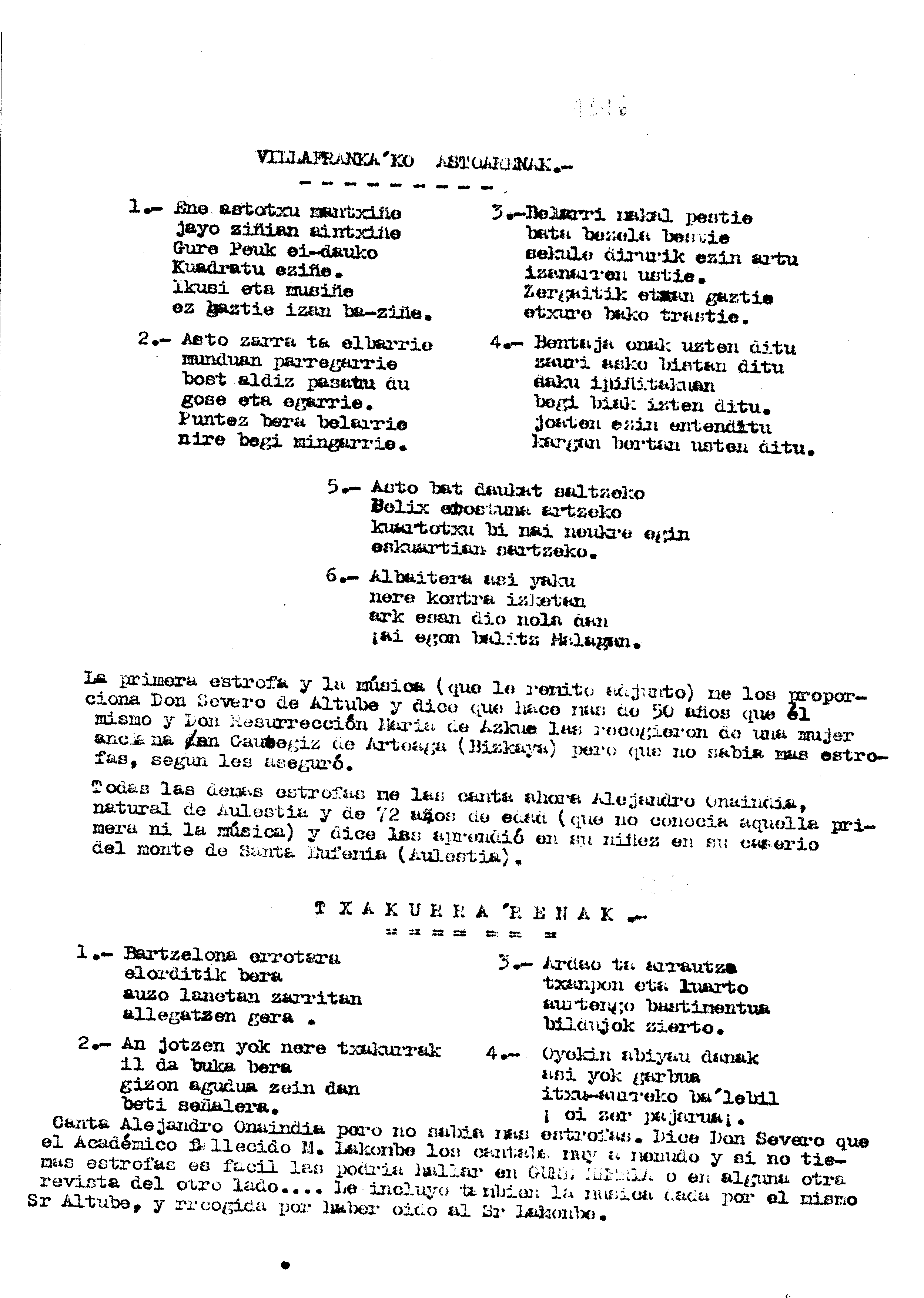Bertsolaritza. Bertso paperak: Izenburua: Villafranca-ko astoarenak