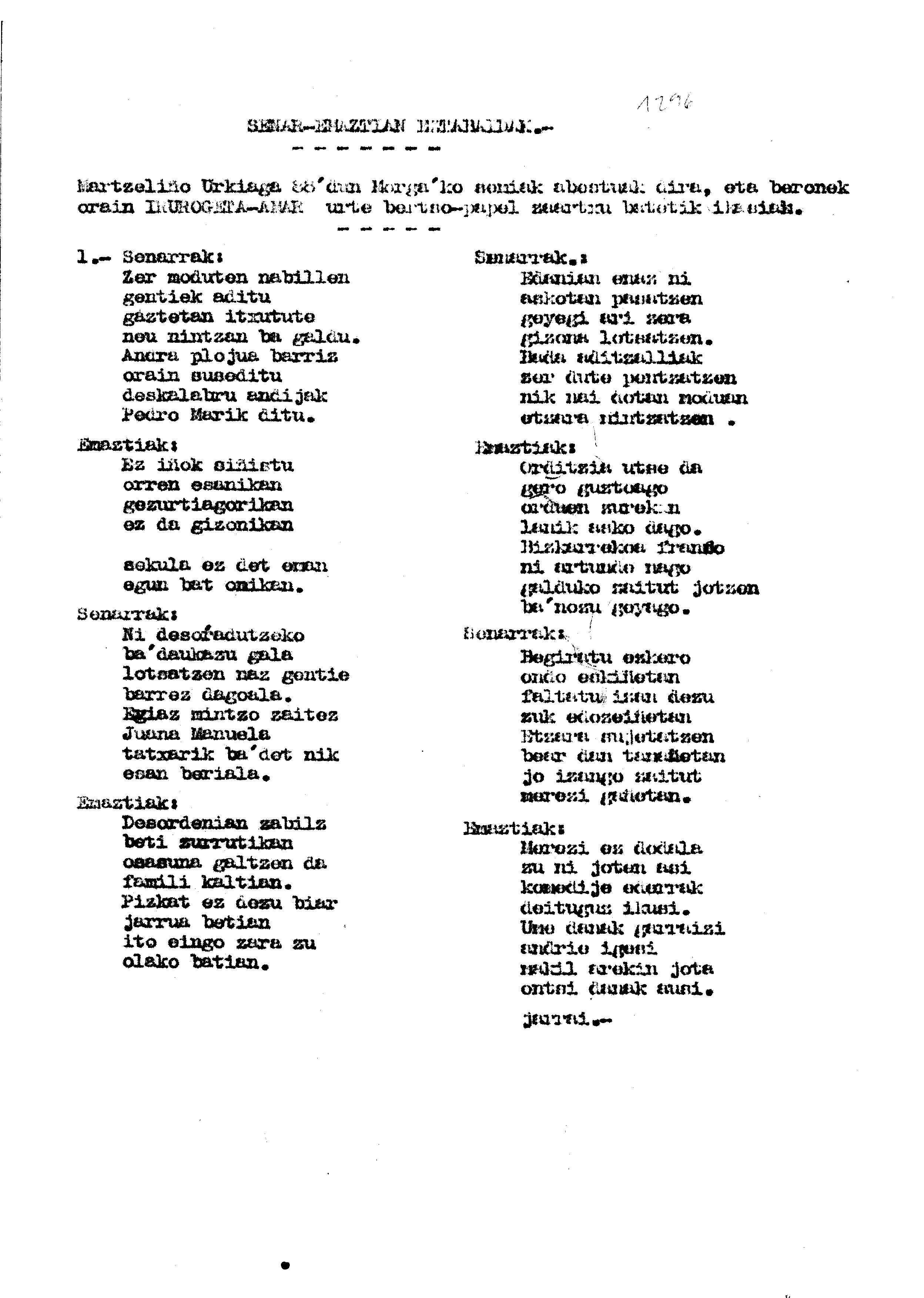 Bertsolaritza. Bertso paperak: Izenburua: Senar-emaztian eztabaidak