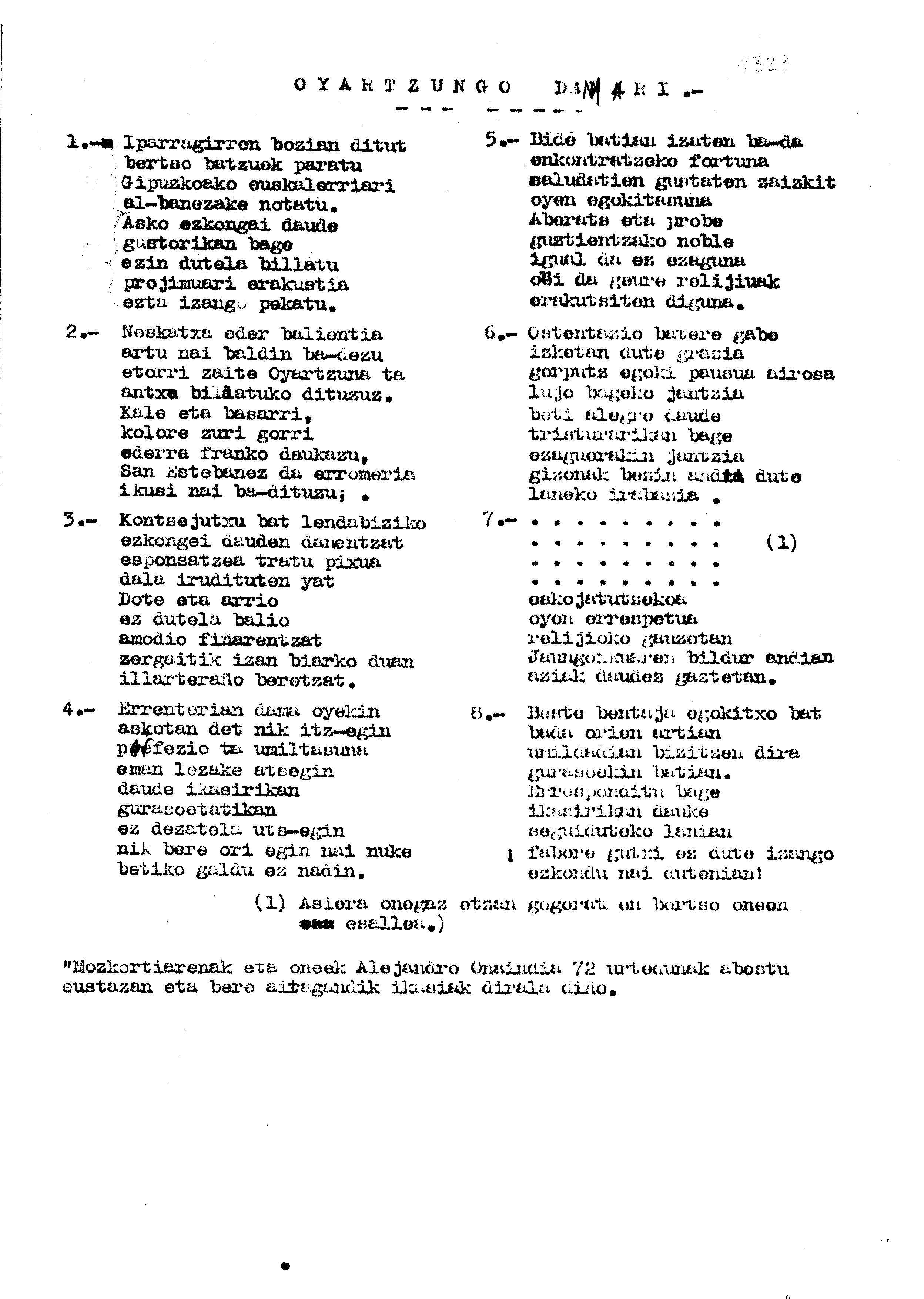 Bertsolaritza. Bertso paperak: Izenburua: Oyartzungo damari