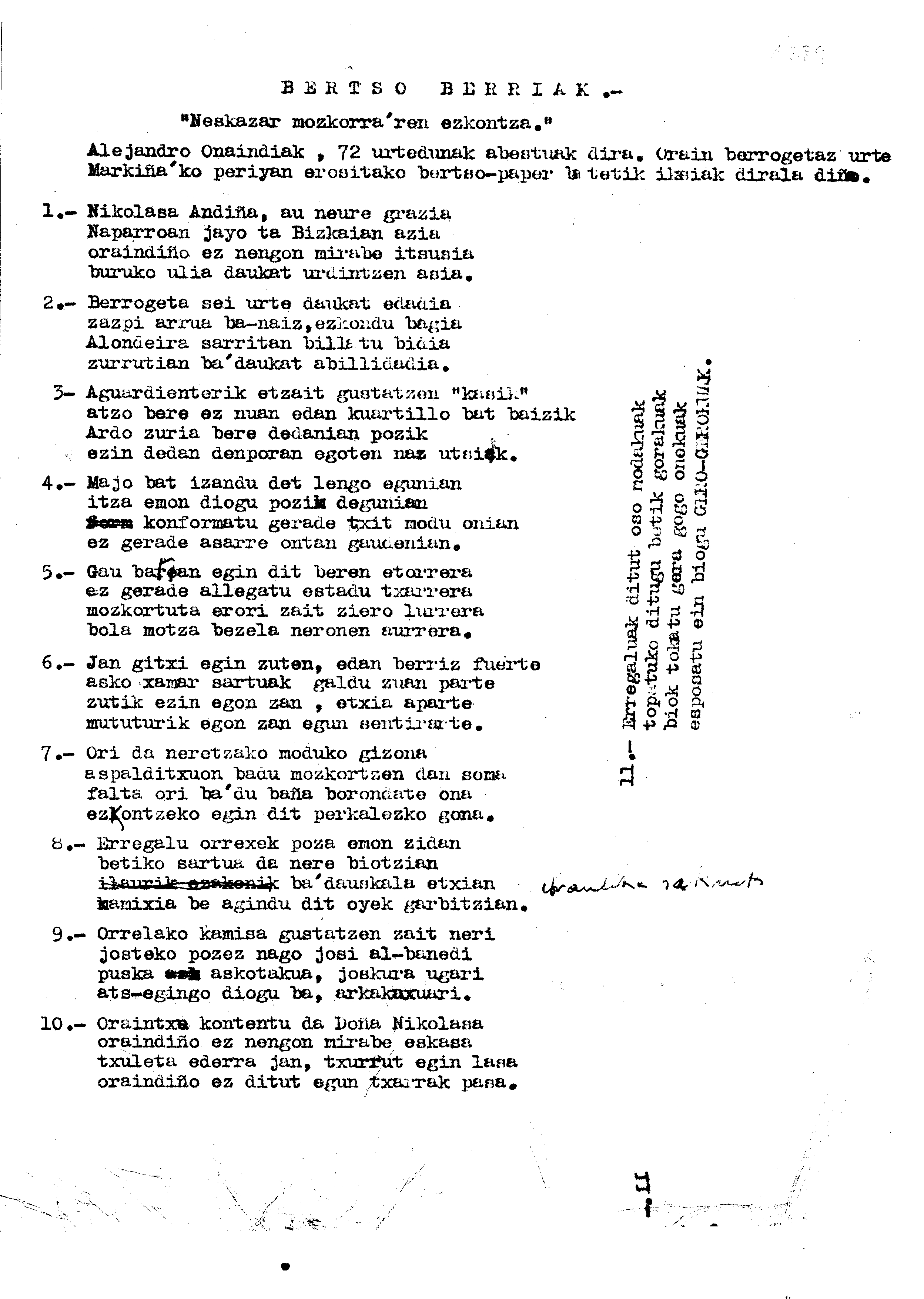 Bertsolaritza. Bertso paperak: Izenburua: Neskazar mozkorraren ezkontza