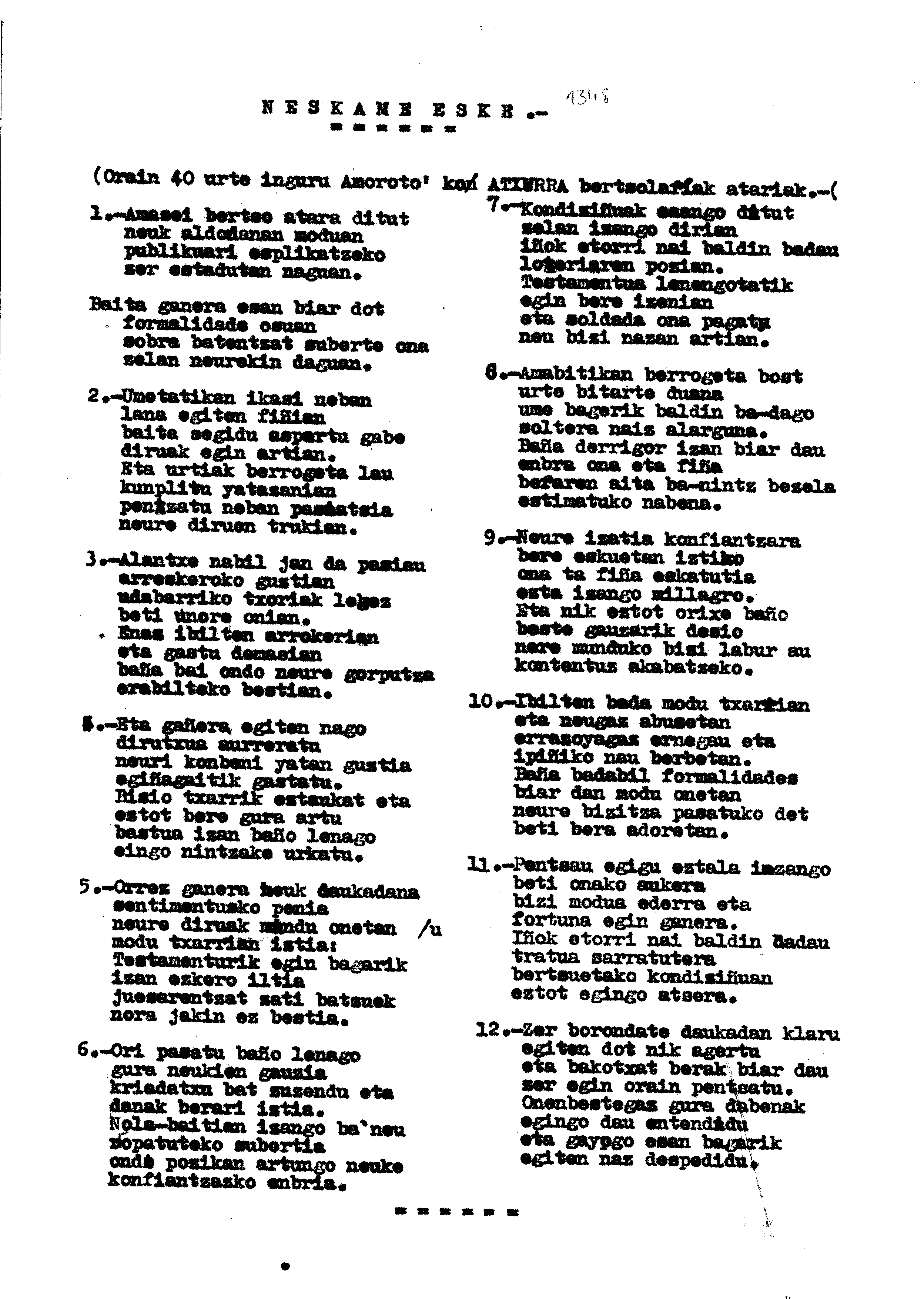 Bertsolaritza. Bertso paperak: Izenburua: Neskame eske