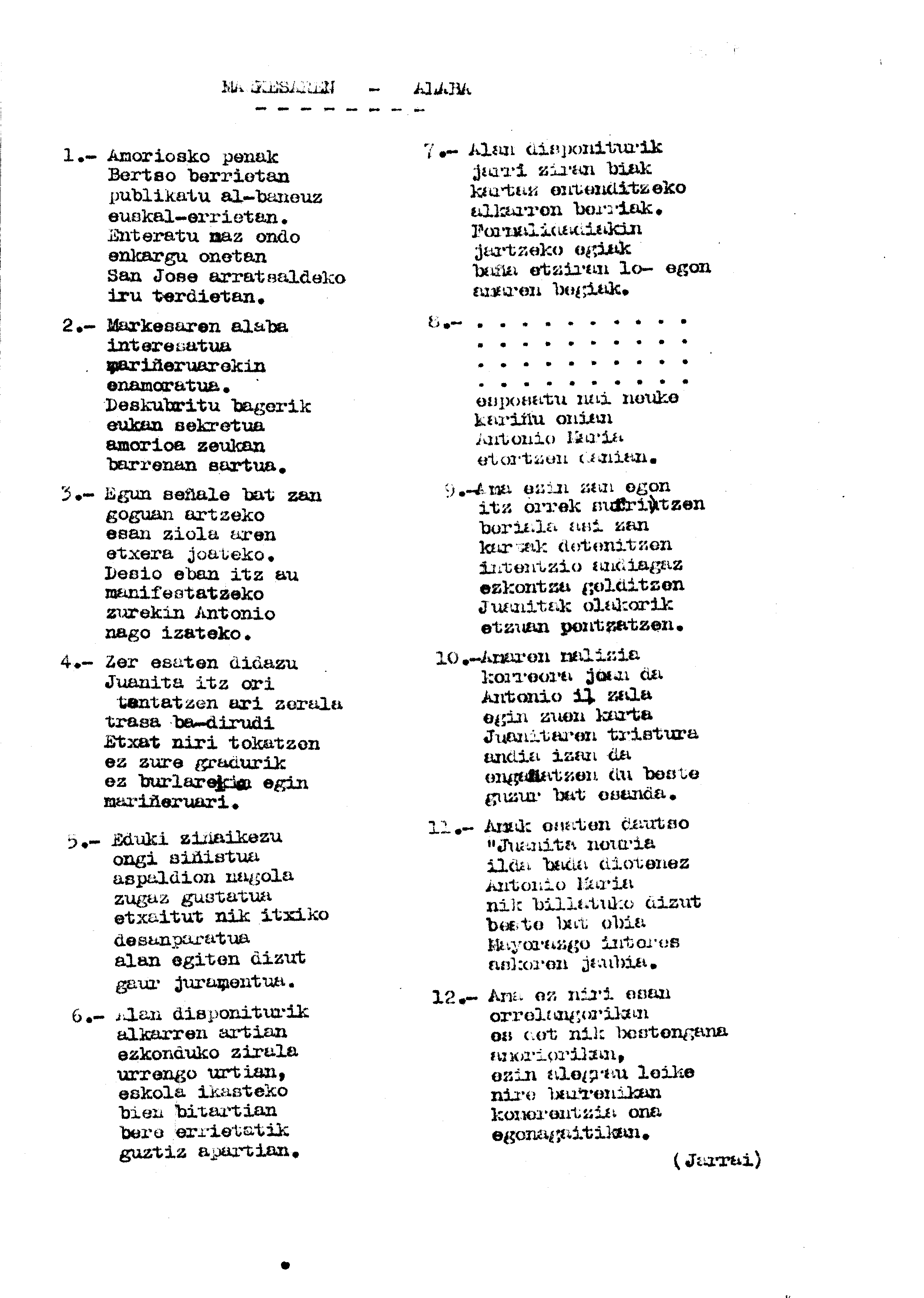 Bertsolaritza. Bertso paperak: Izenburua: Markesaren alaba