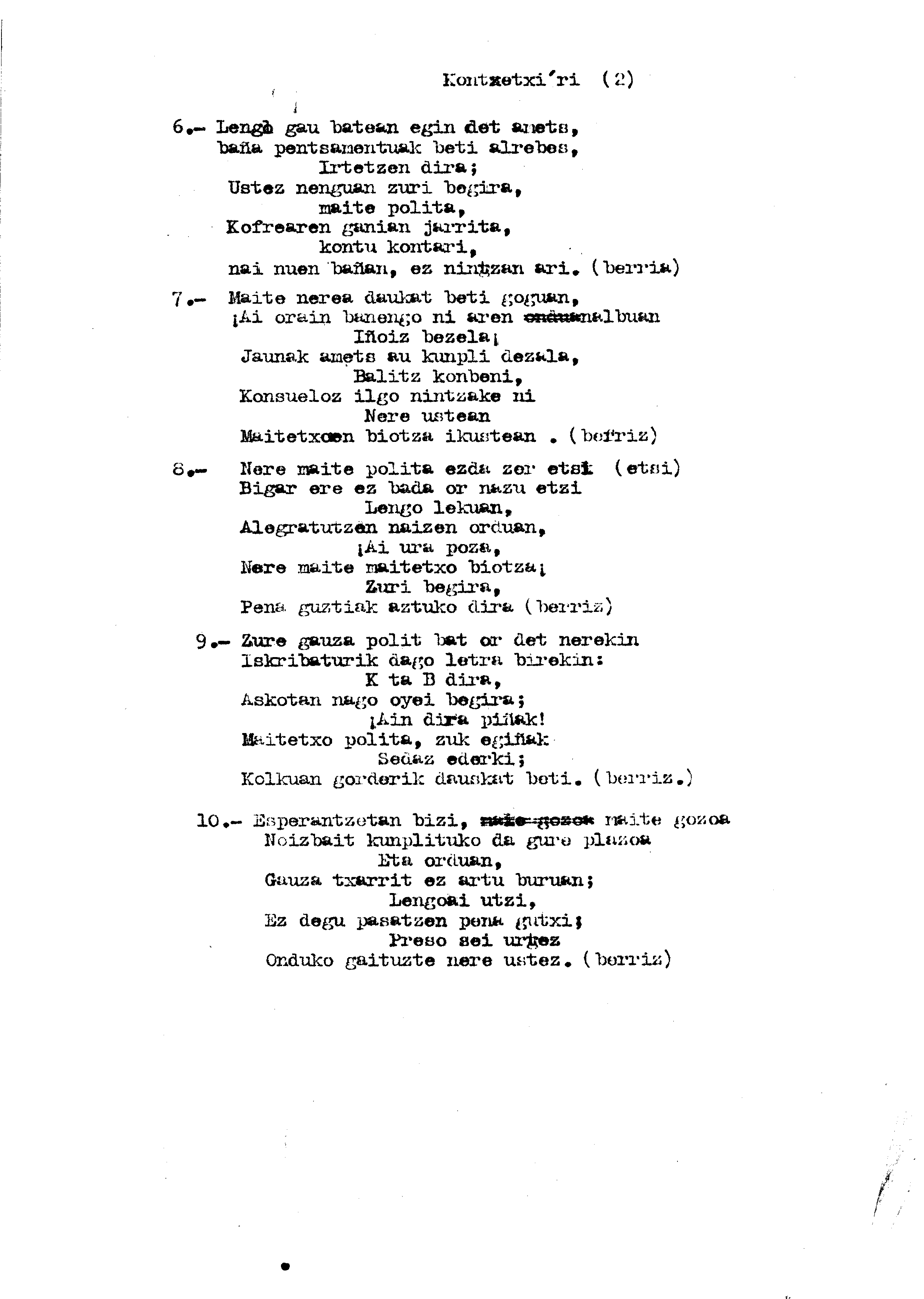 Bertsolaritza. Bertso paperak: Izenburua: Kontxetxi-ri