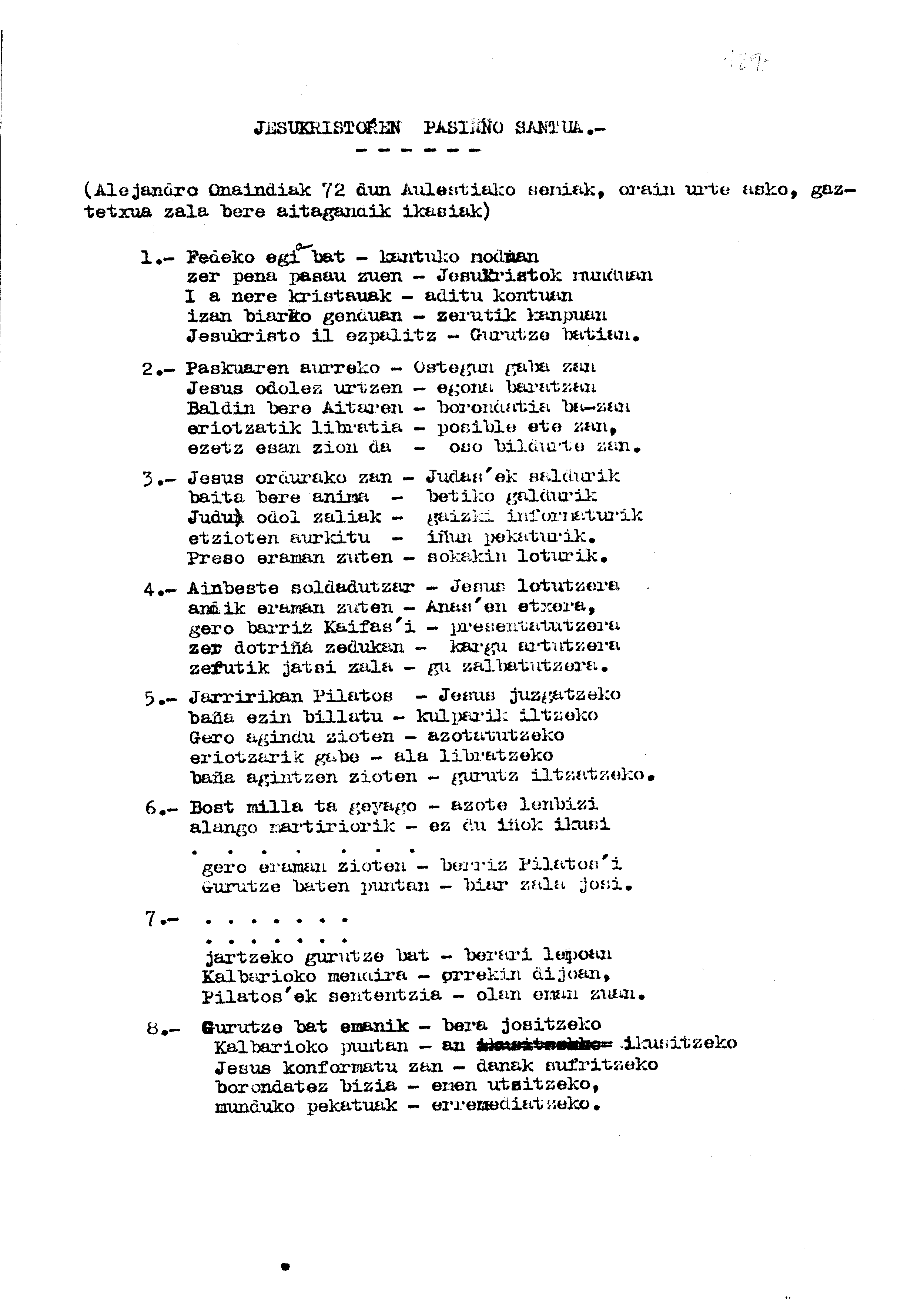 Bertsolaritza. Bertso paperak: Izenburua: Jesukristoren pasiño santua