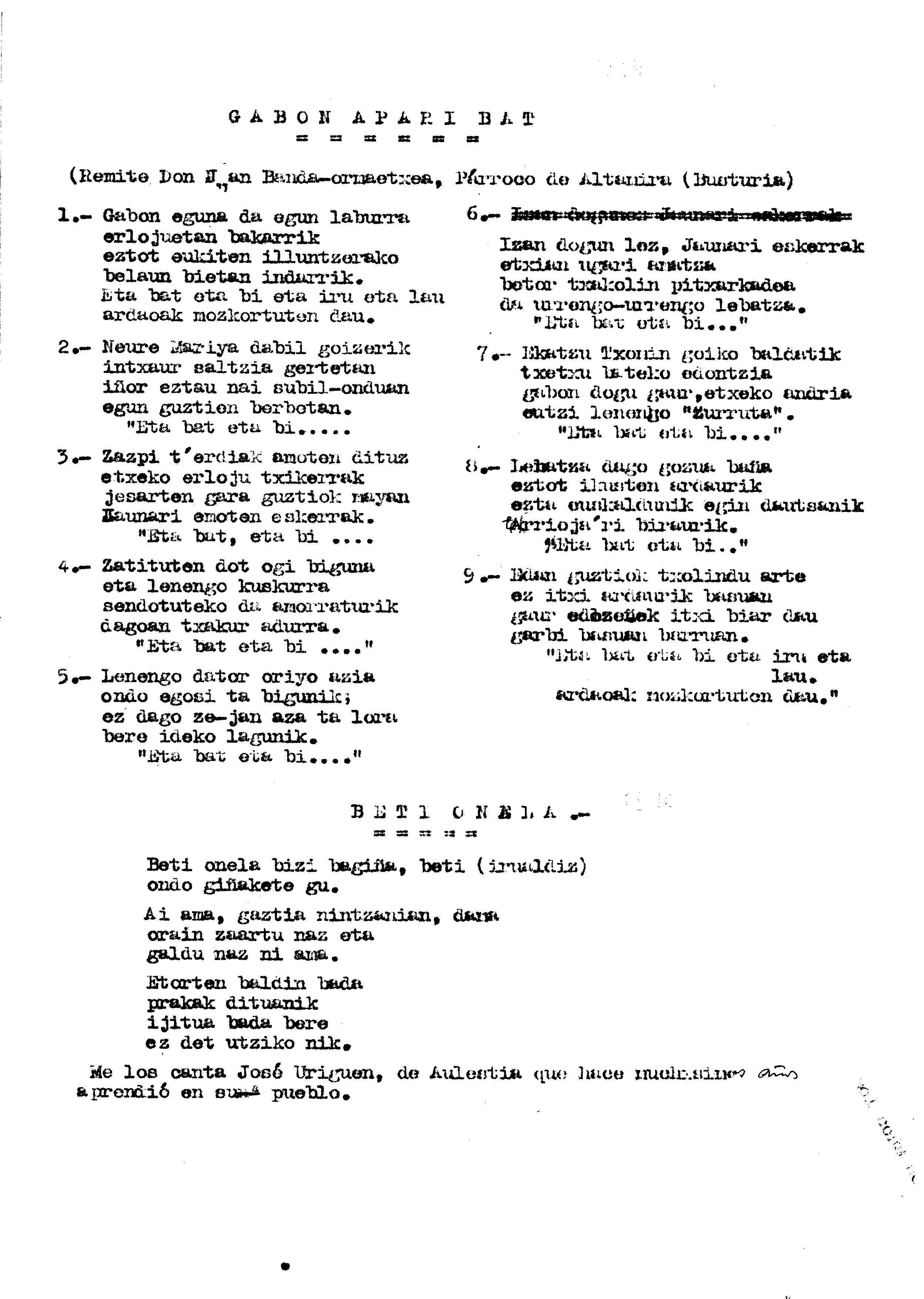 Bertsolaritza. Bertso paperak: Izenburua: Beti onela