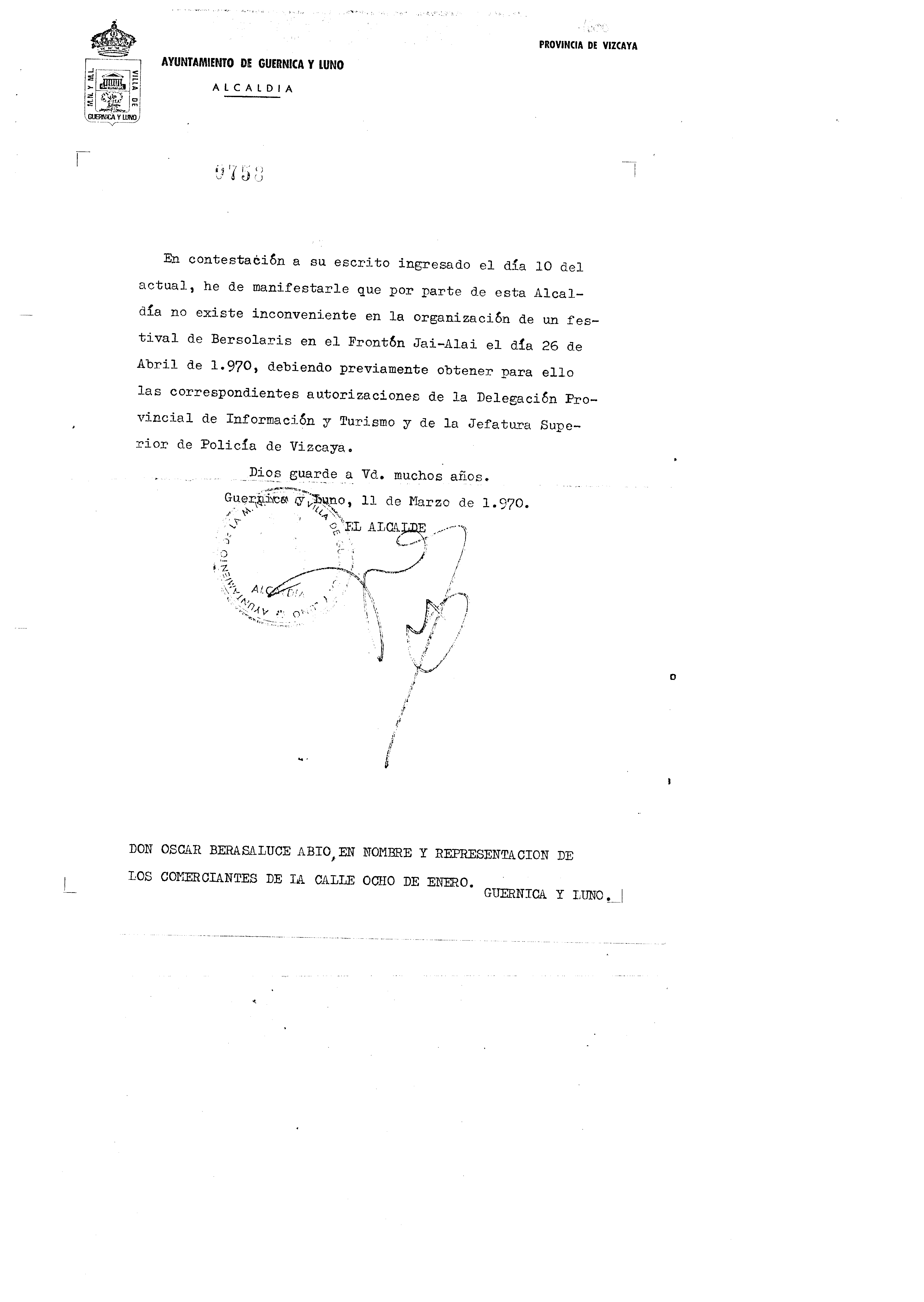 Bertsolaritza. Bertso txapelketak: Bertso saio bat antolatzeko Gernikao Udalaren baimena