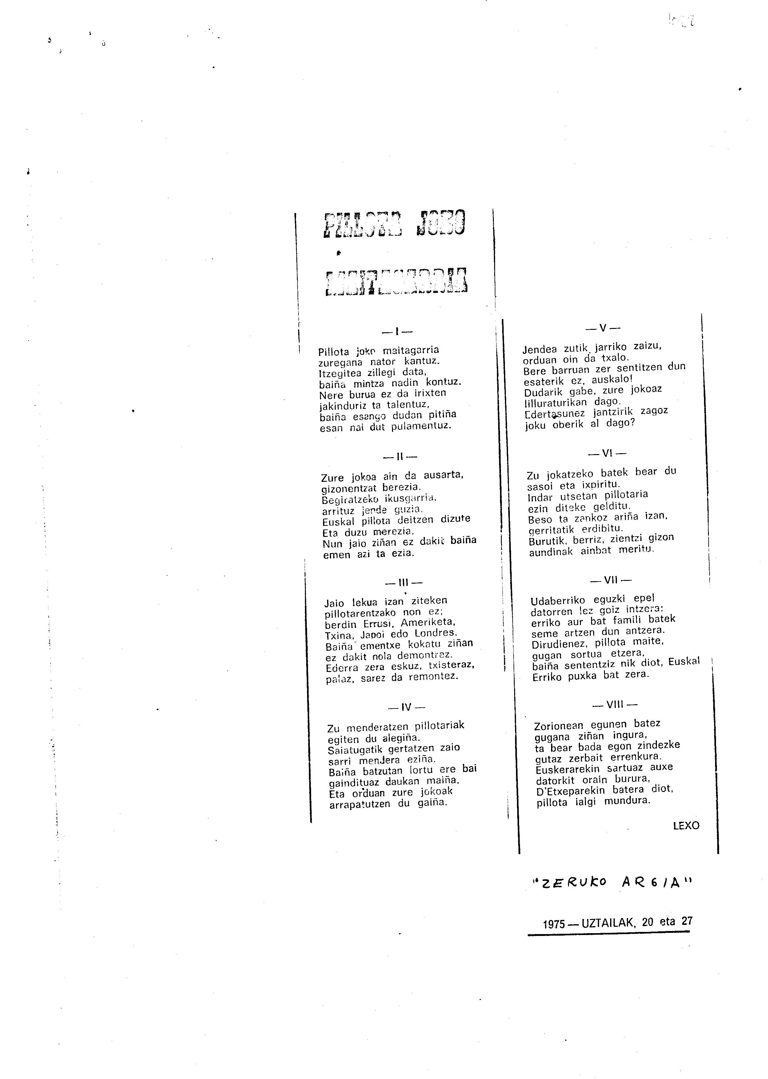 Mendaro Txirristaka Bertso-paper Saria (2. 1975)