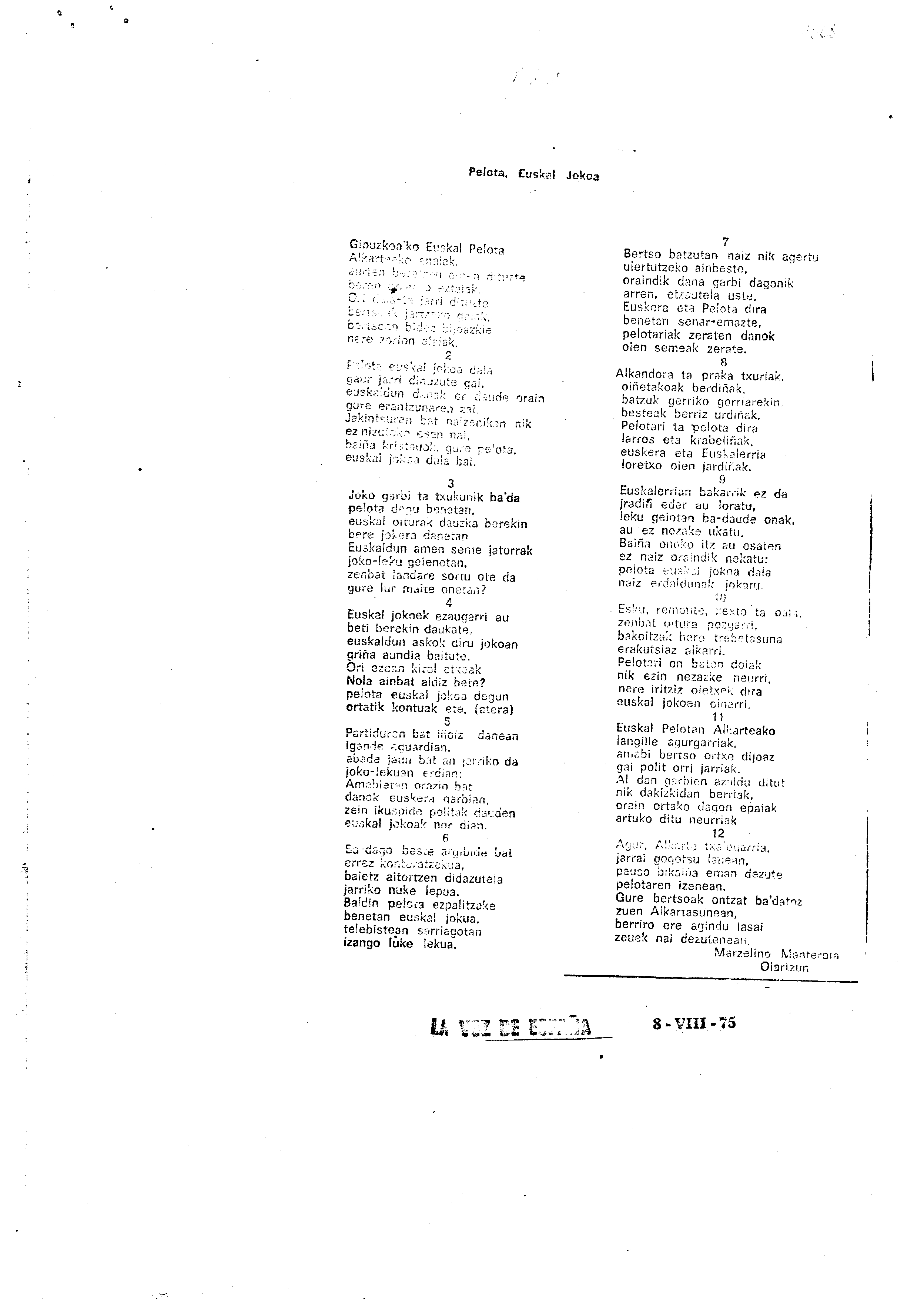 Mendaro Txirristaka Bertso-paper Saria (2. 1975)