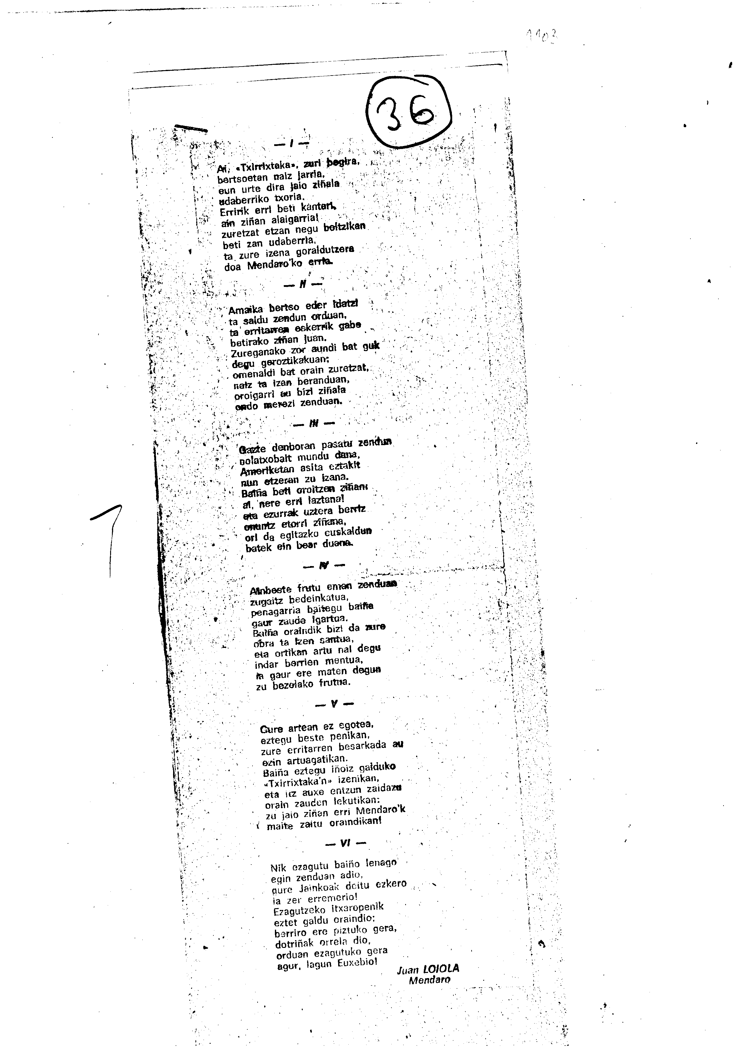 Mendaro Txirristaka Bertso-Paper Saria (1. 1974)