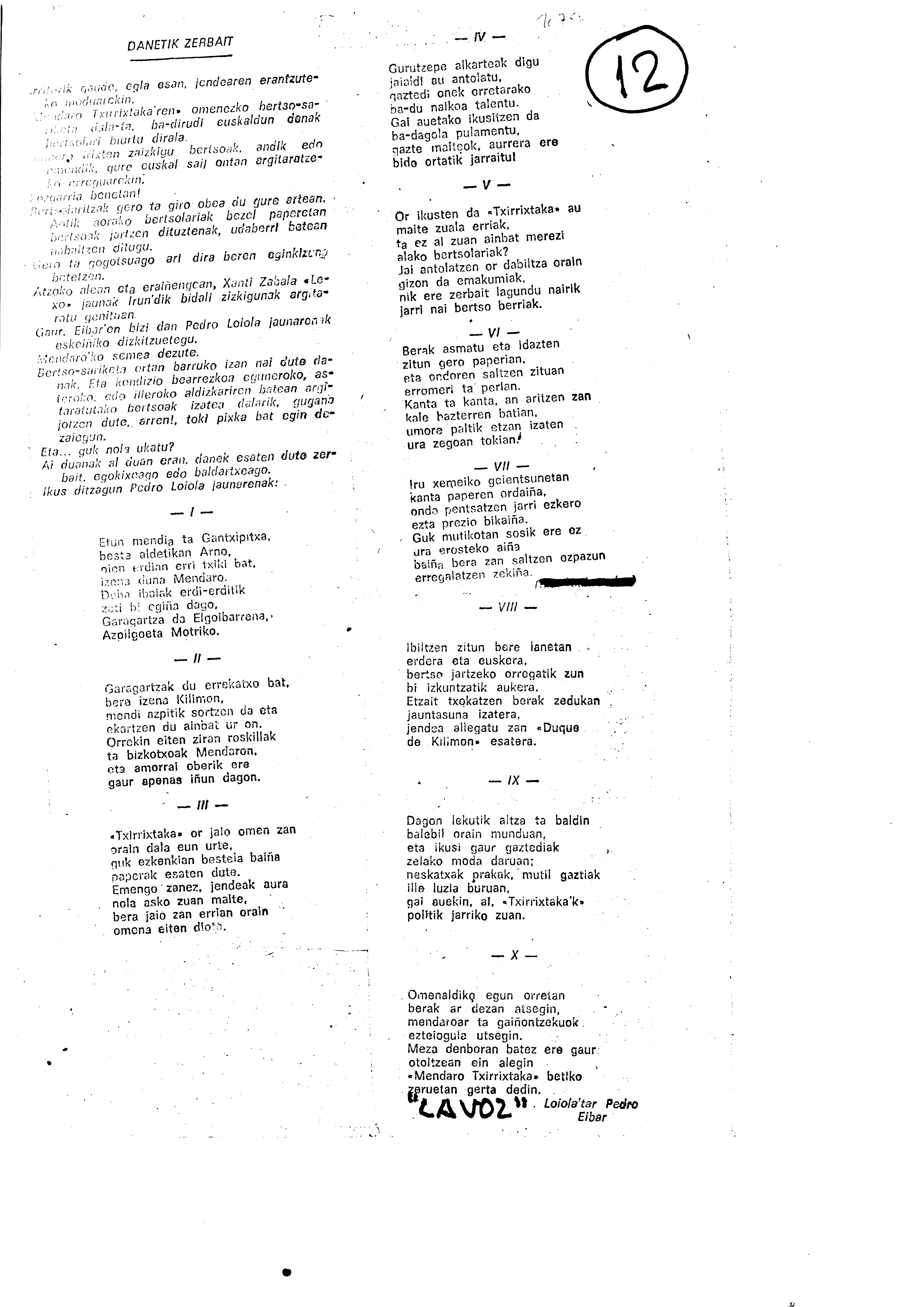 Mendaro Txirristaka Bertso-Paper Saria (1. 1974)