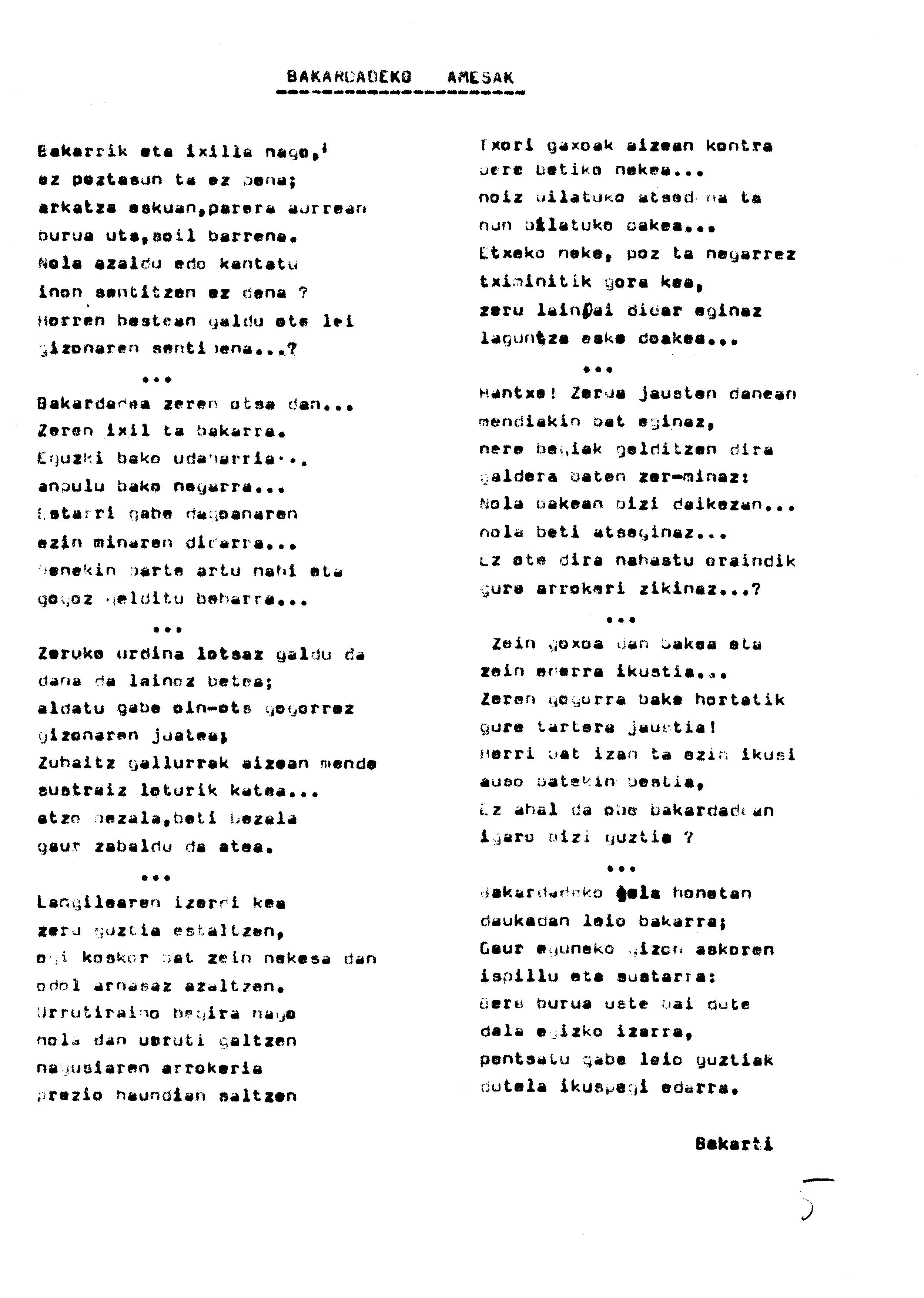 Bertsolaritza. Bertso-paper sariak. : Izenburua: Bakardadeko amesak