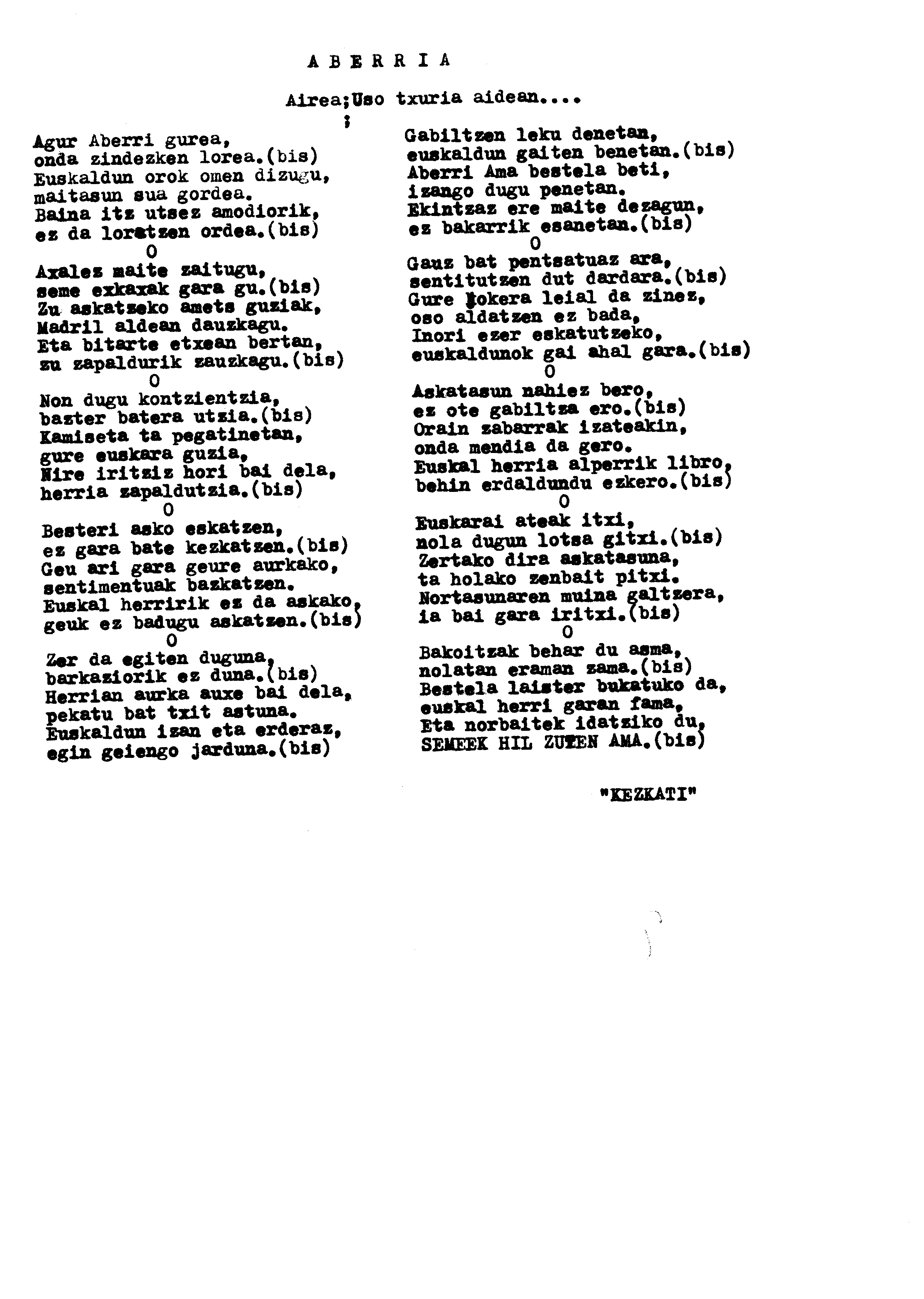 Bertsolaritza. Bertso-paper sariak. : Izenburua: Aberria