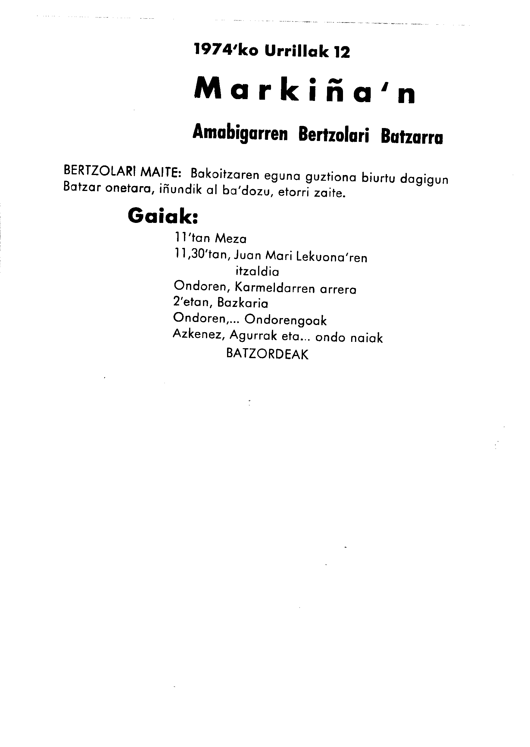Markinako Bertsolari Eguna (1974. Markina);