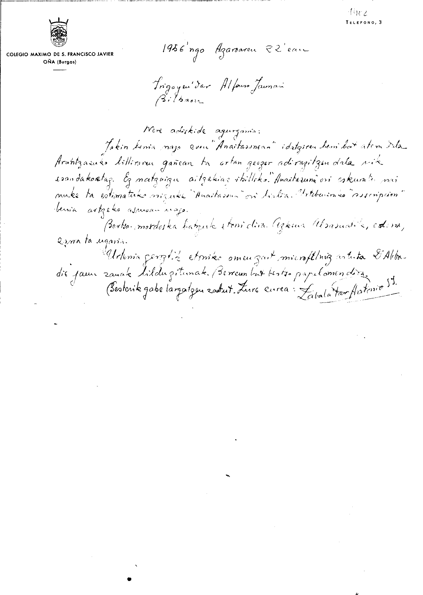 Alfonso Irigoienen Artxiboa > Euskaltzaindia > Korrespondentzia
