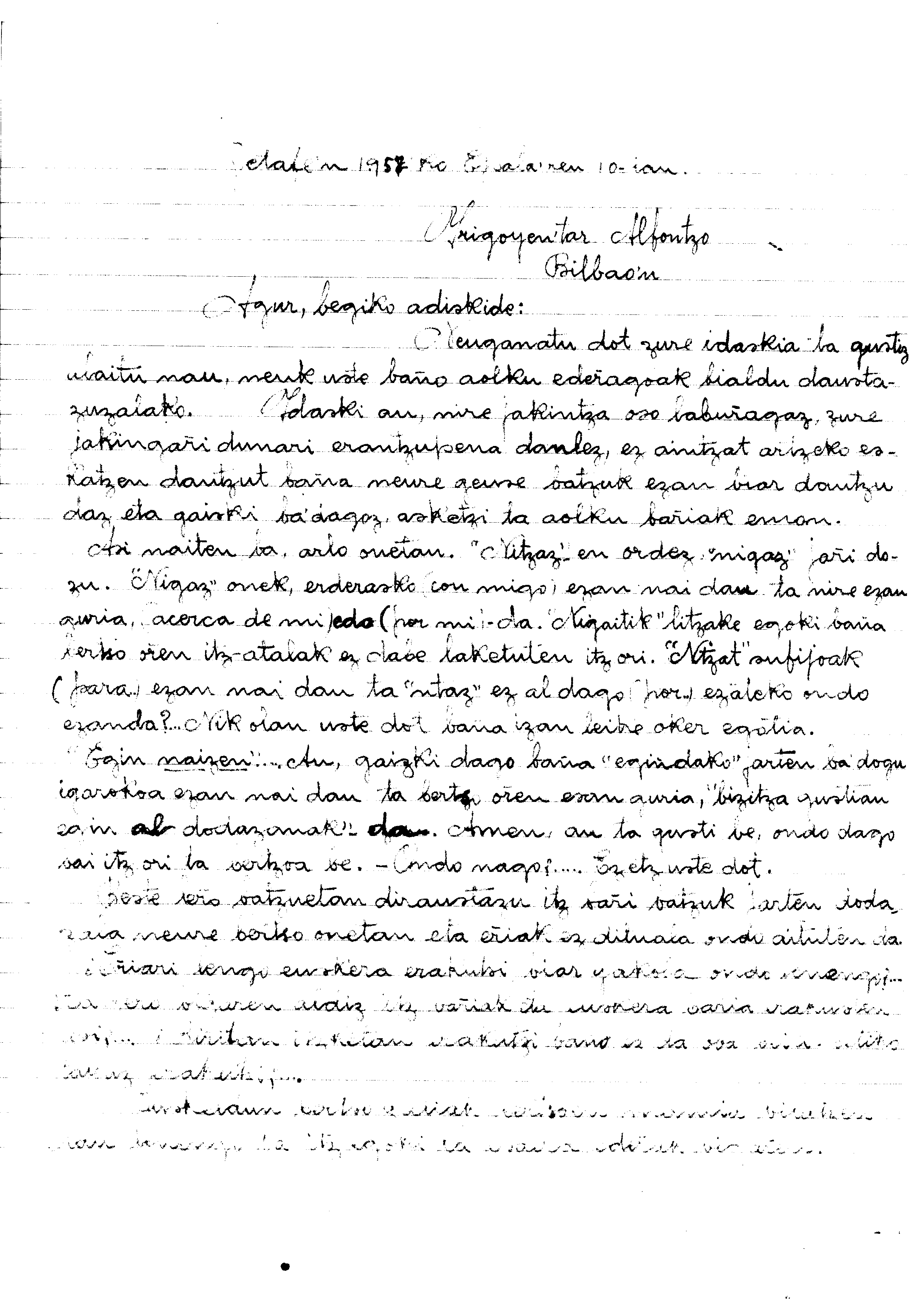 Alfonso Irigoienen Artxiboa > Euskaltzaindia > Korrespondentzia