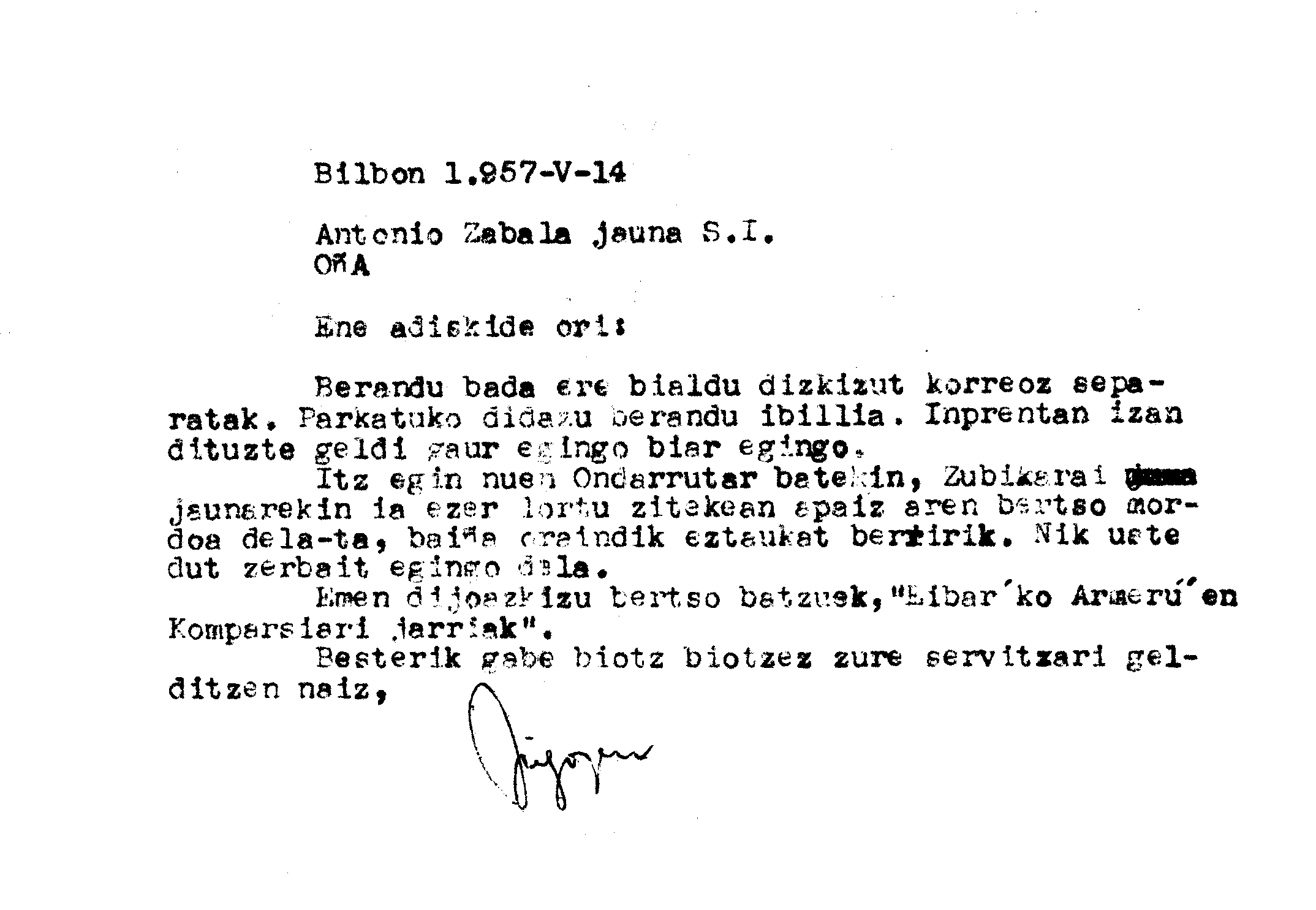 Alfonso Irigoienen Artxiboa > Euskaltzaindia > Korrespondentzia