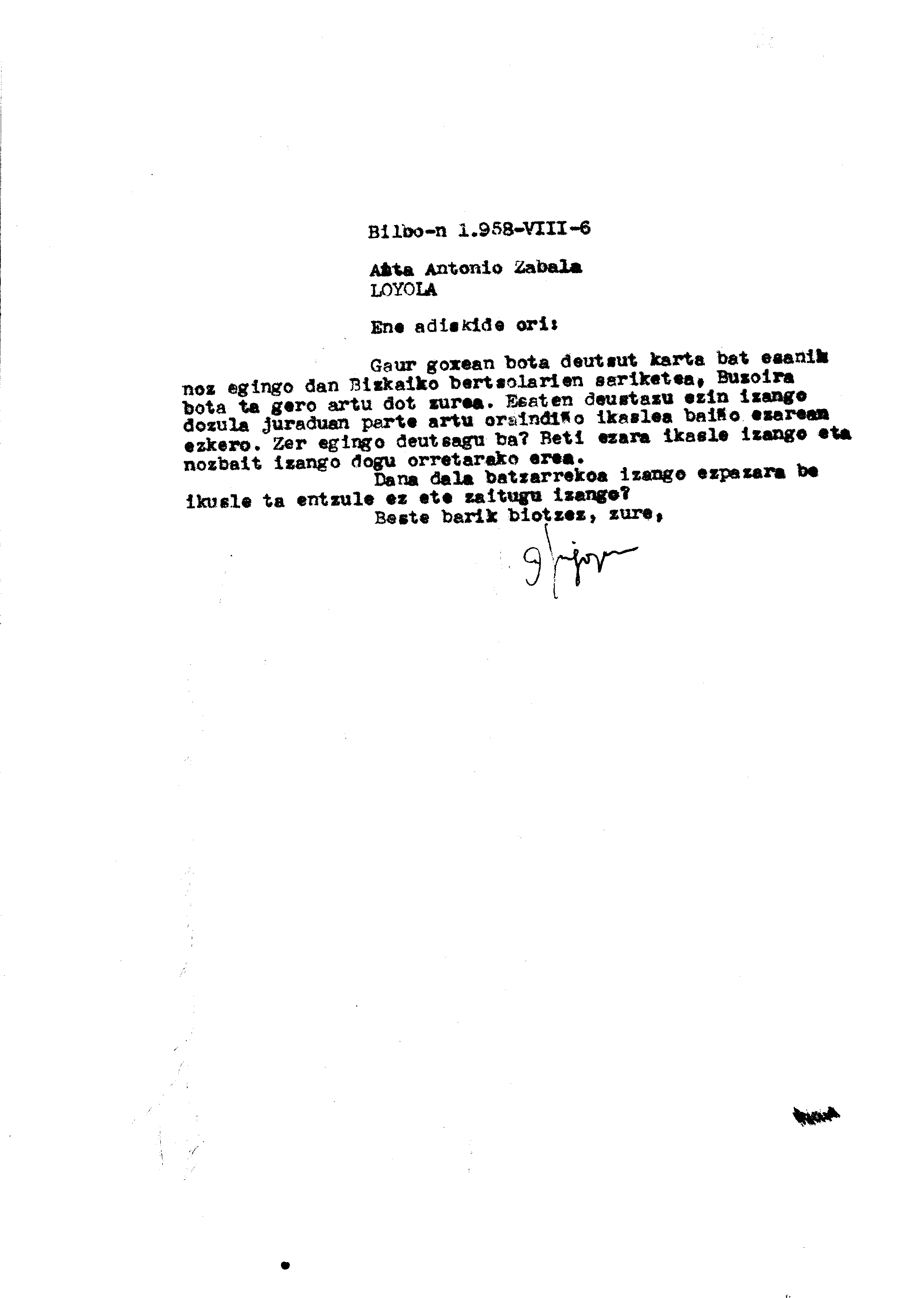 Alfonso Irigoienen Artxiboa > Euskaltzaindia > Korrespondentzia