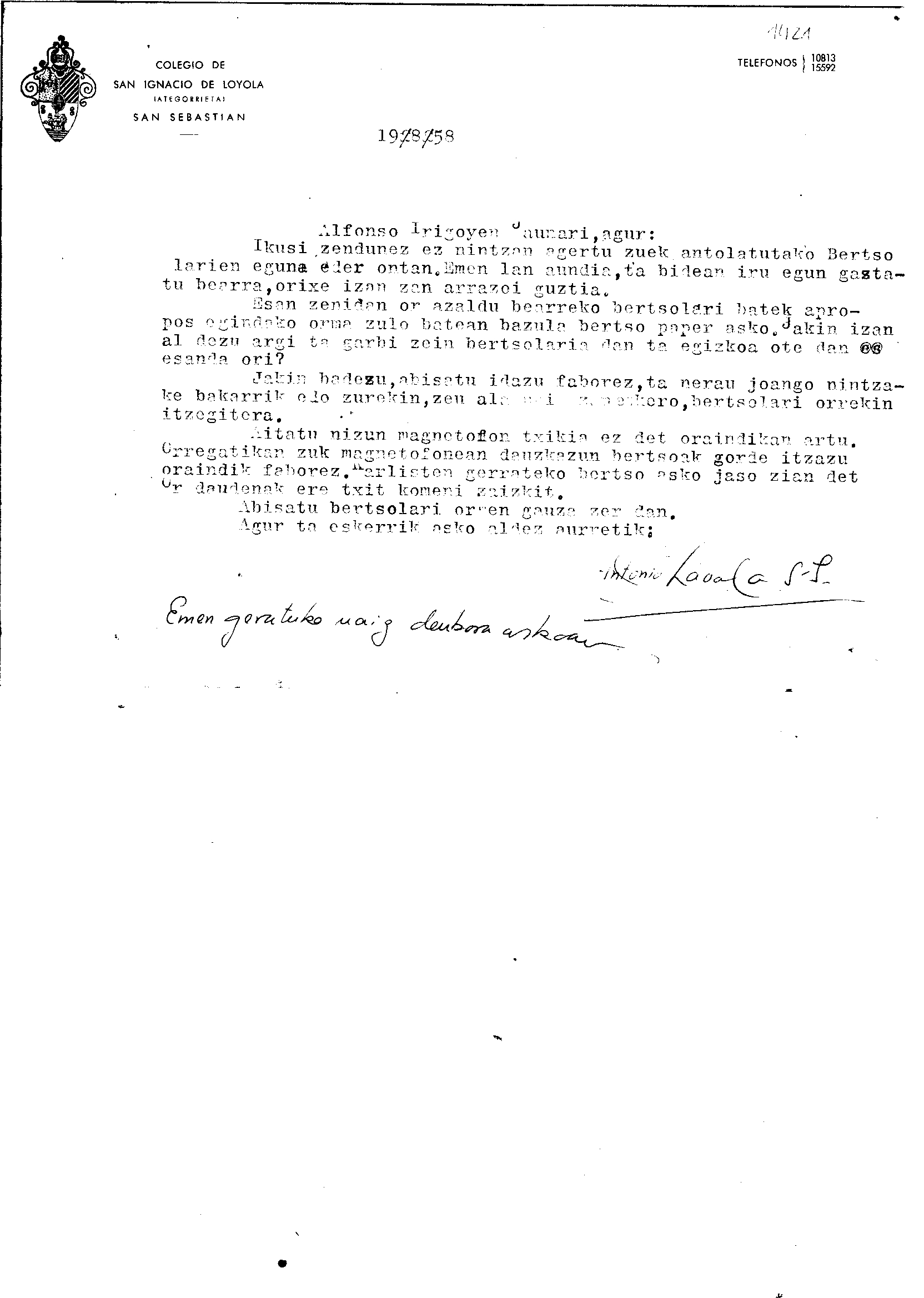 Alfonso Irigoienen Artxiboa > Euskaltzaindia > Korrespondentzia