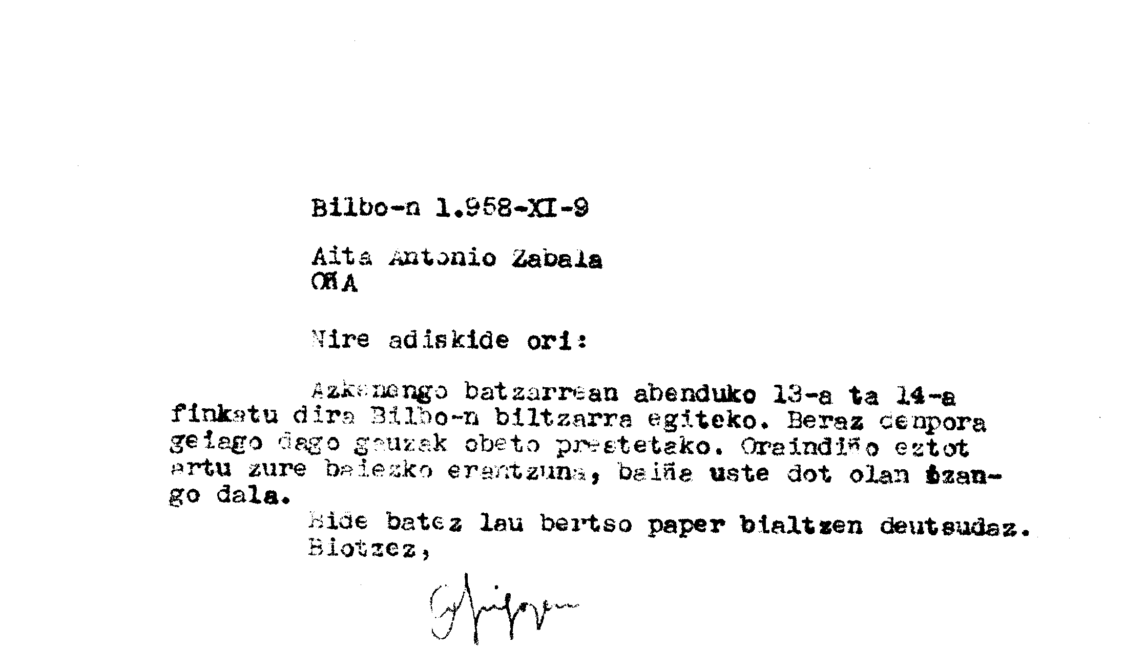 Euskaltzaindia. Gutunak: Irigoienen gutuna Euskaltzaindiaren Biltzarreko data baieztatuz