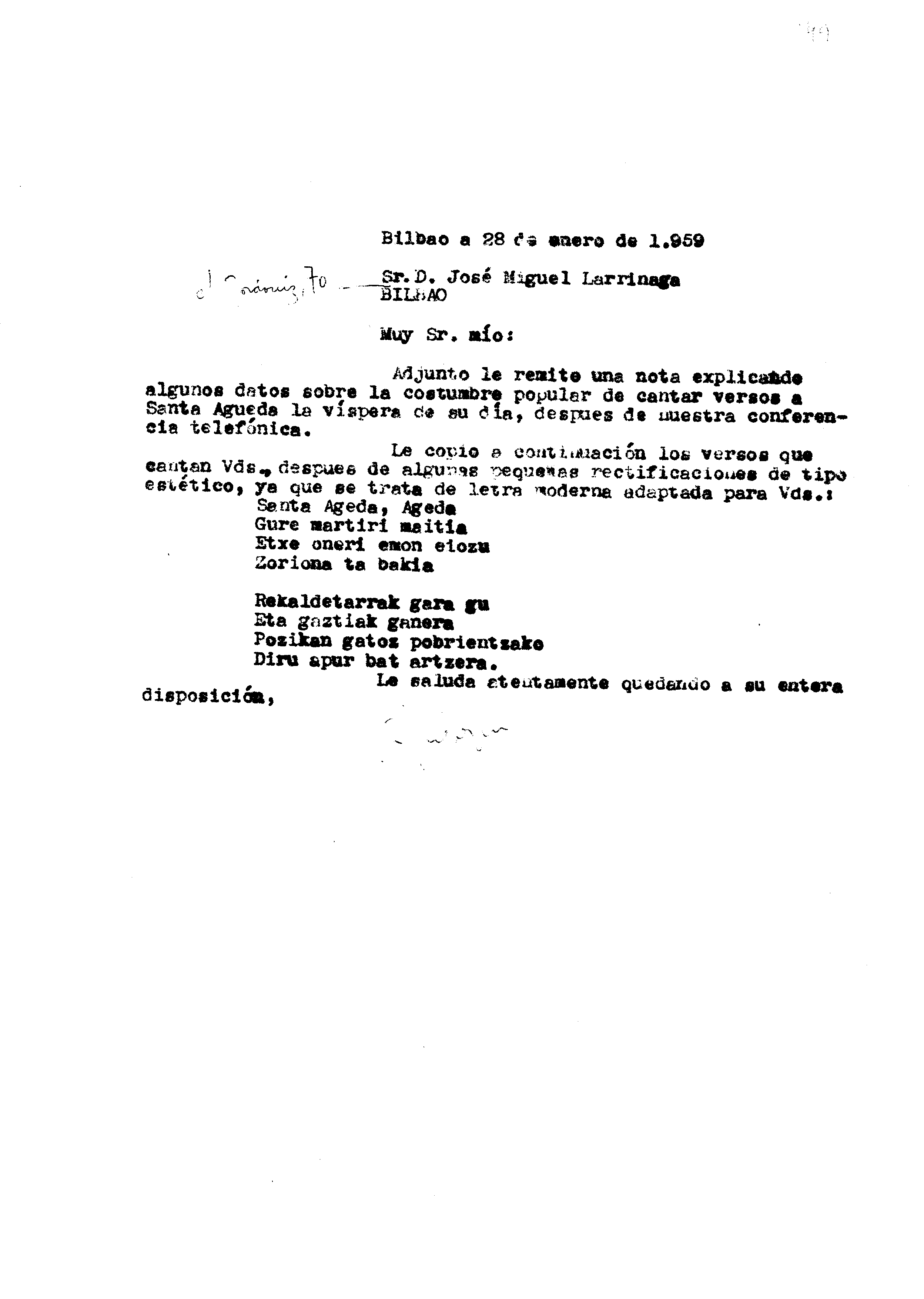 Euskaltzaindia. Gutunak: Santa Ageda bertsoen jatorria