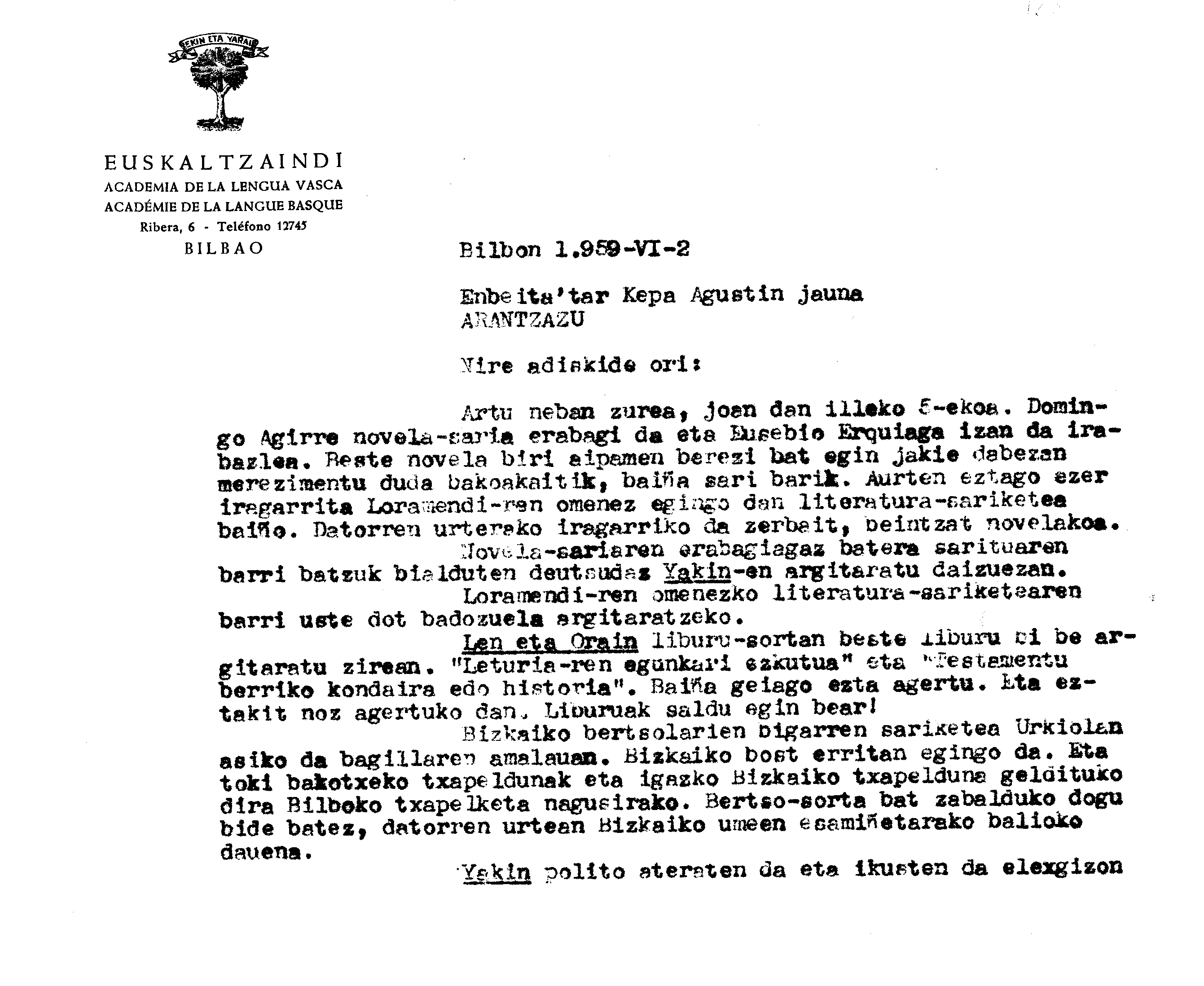 Euskaltzaindia. Gutunak: