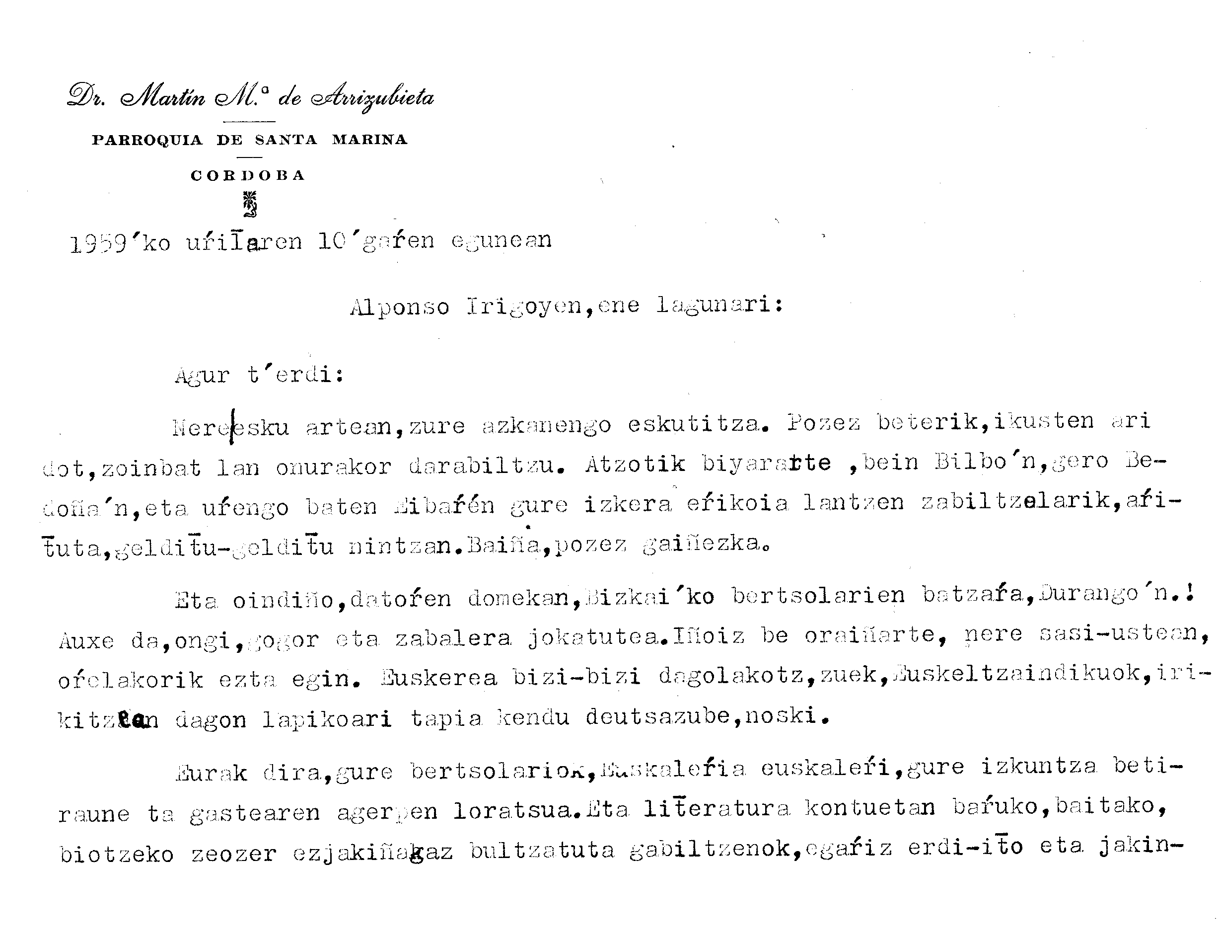 Alfonso Irigoienen Artxiboa > Euskaltzaindia > Korrespondentzia