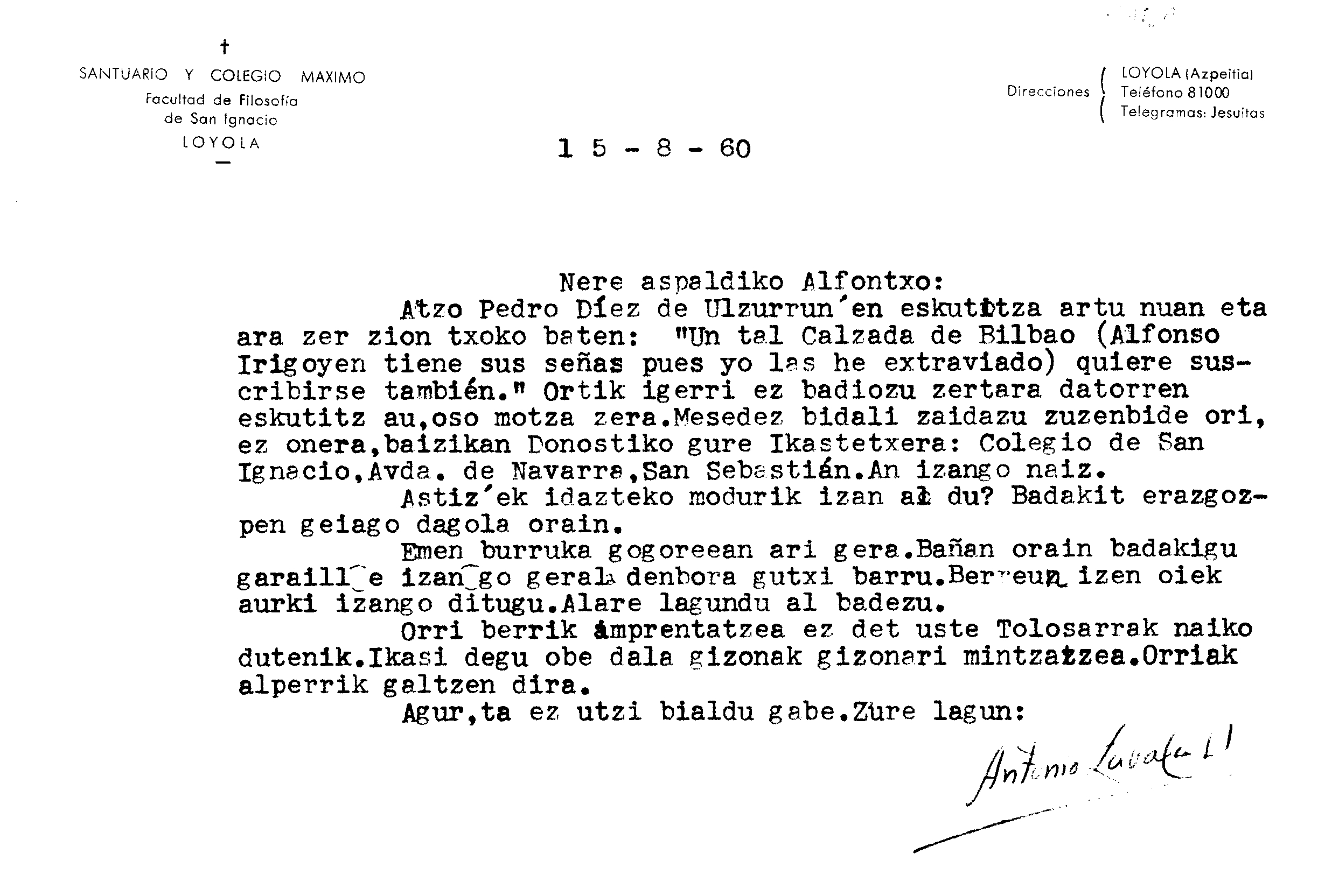 Alfonso Irigoienen Artxiboa > Euskaltzaindia > Korrespondentzia