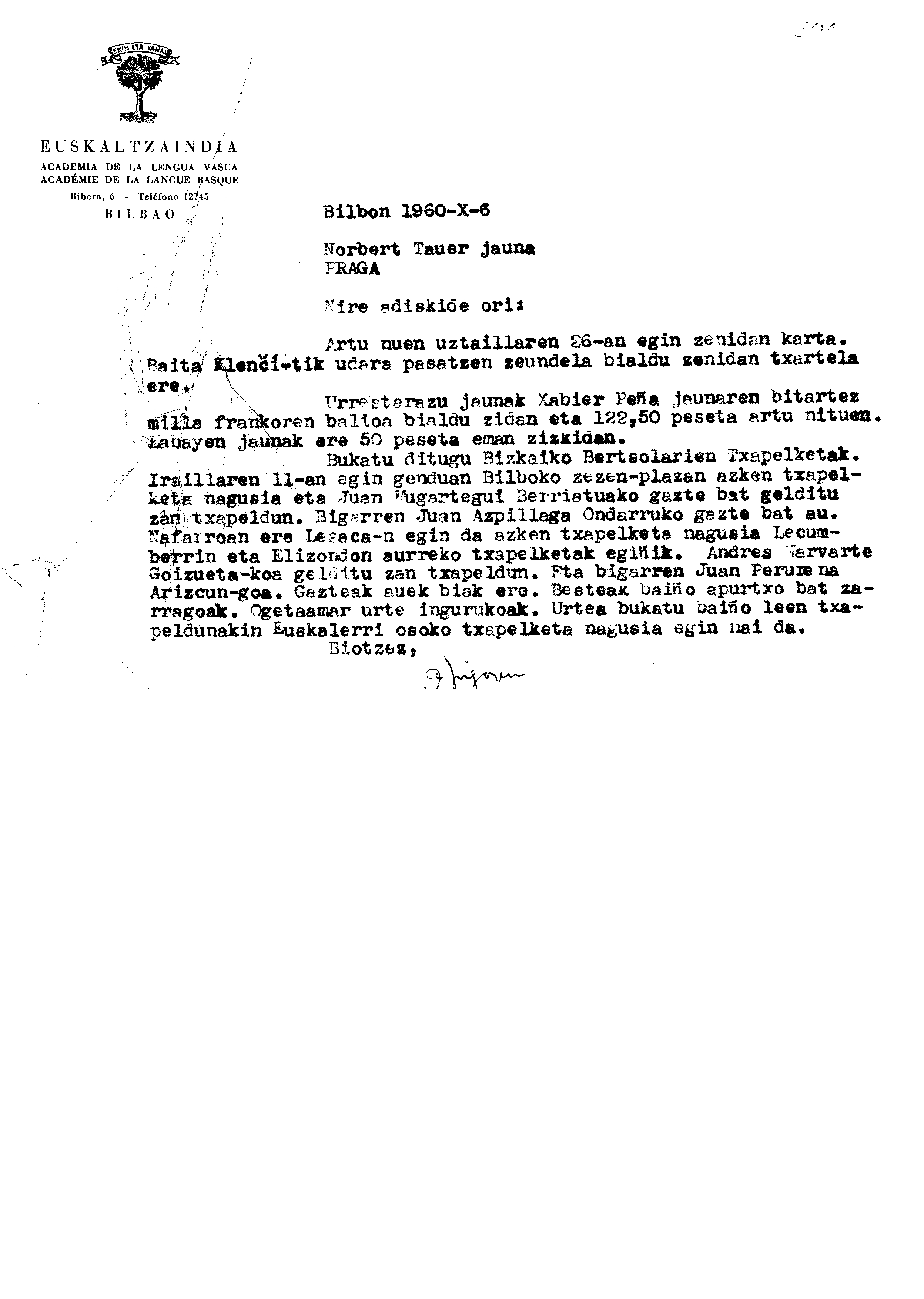 Alfonso Irigoienen Artxiboa > Euskaltzaindia > Korrespondentzia