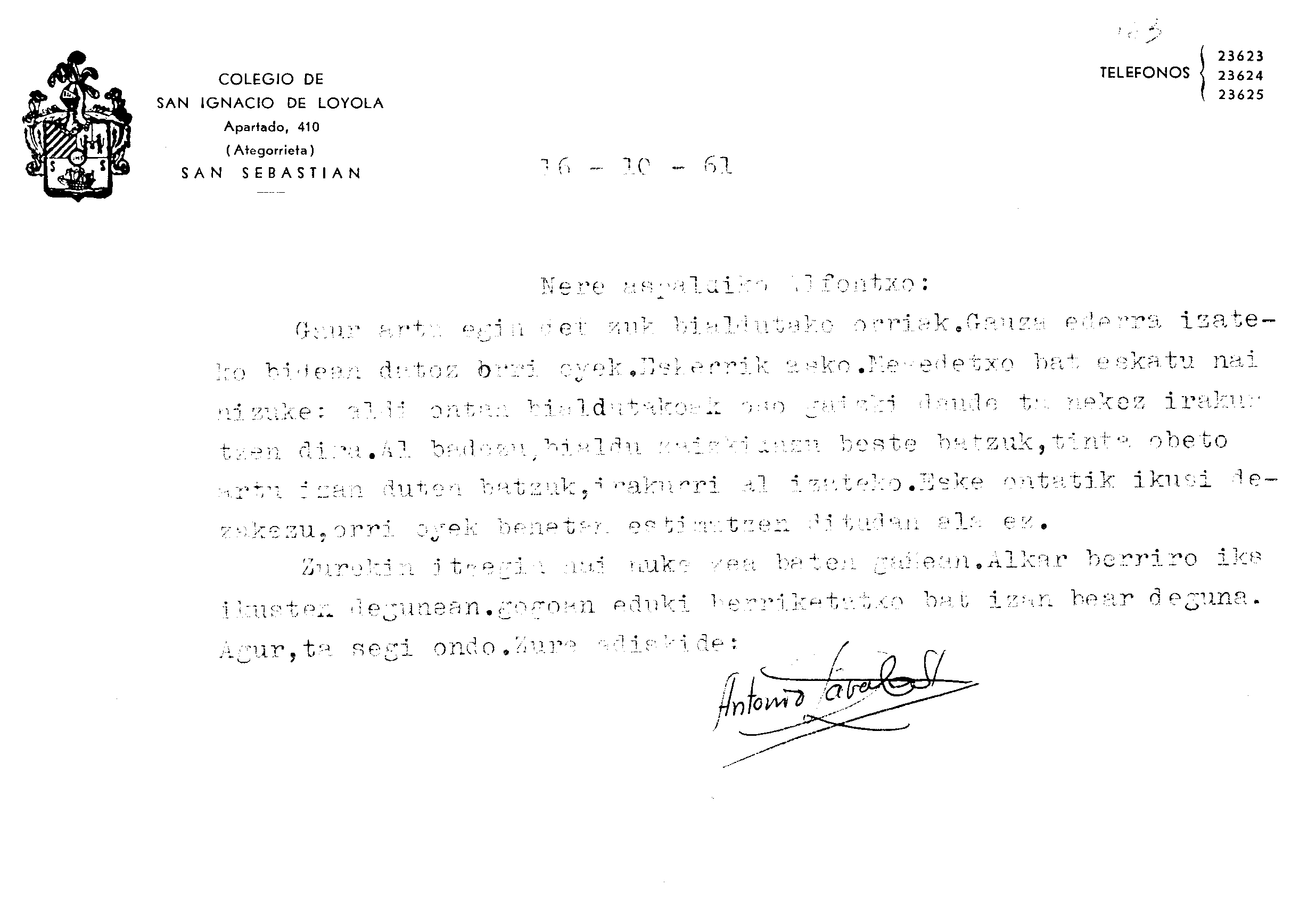 Alfonso Irigoienen Artxiboa > Euskaltzaindia > Korrespondentzia