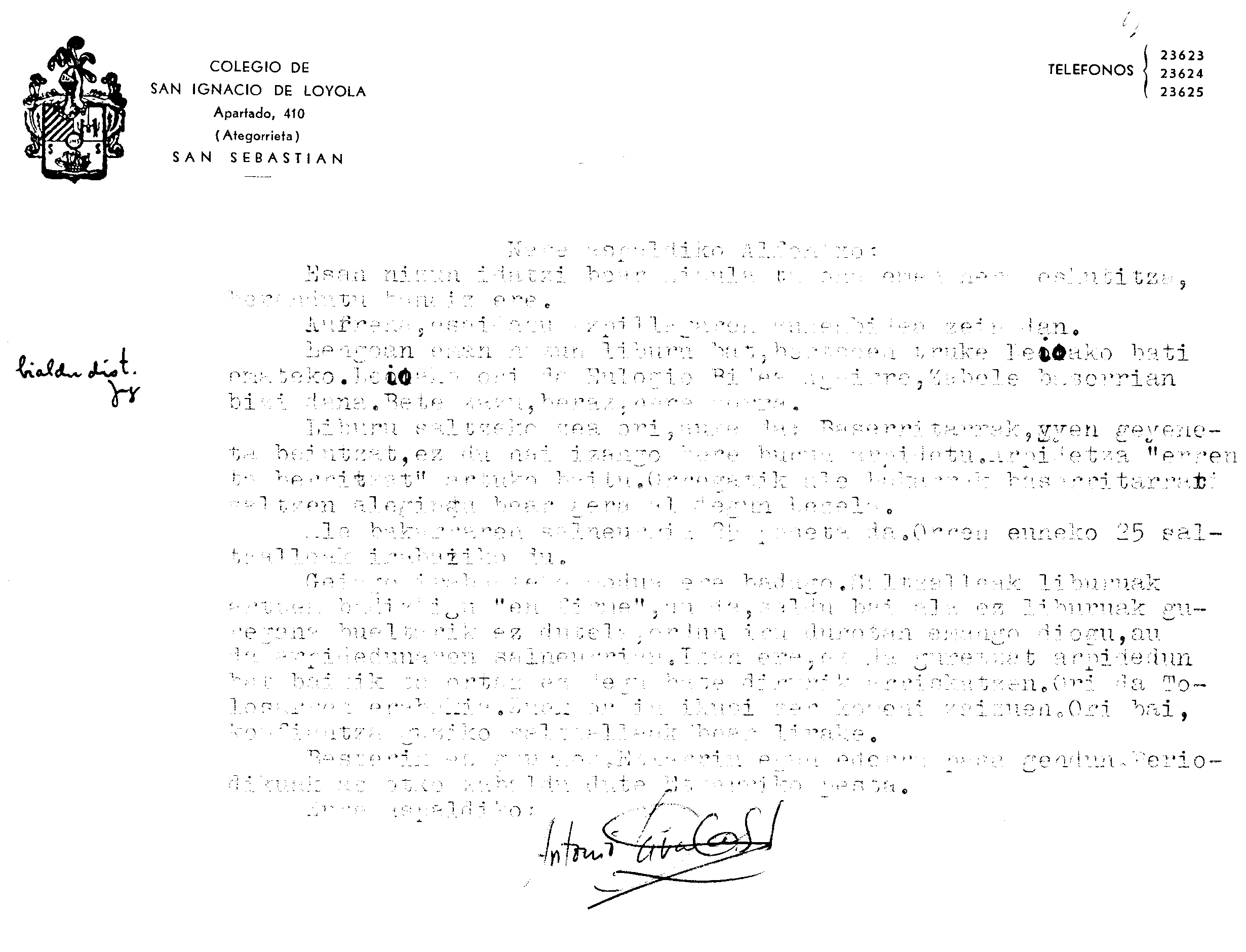 Alfonso Irigoienen Artxiboa > Euskaltzaindia > Korrespondentzia