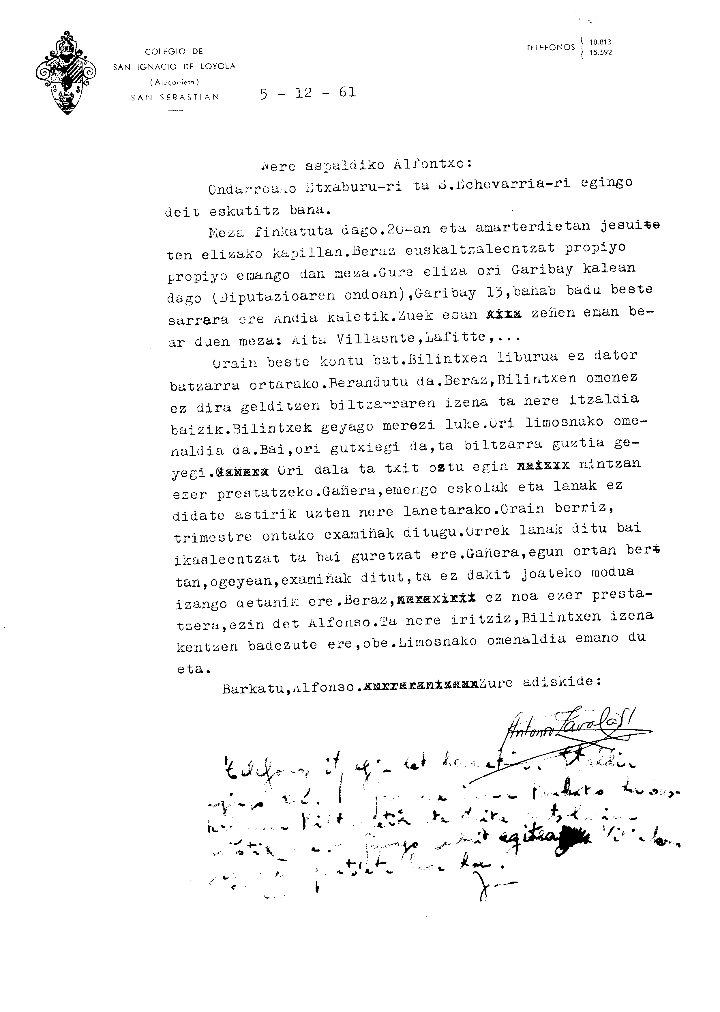 Alfonso Irigoienen Artxiboa > Euskaltzaindia > Korrespondentzia
