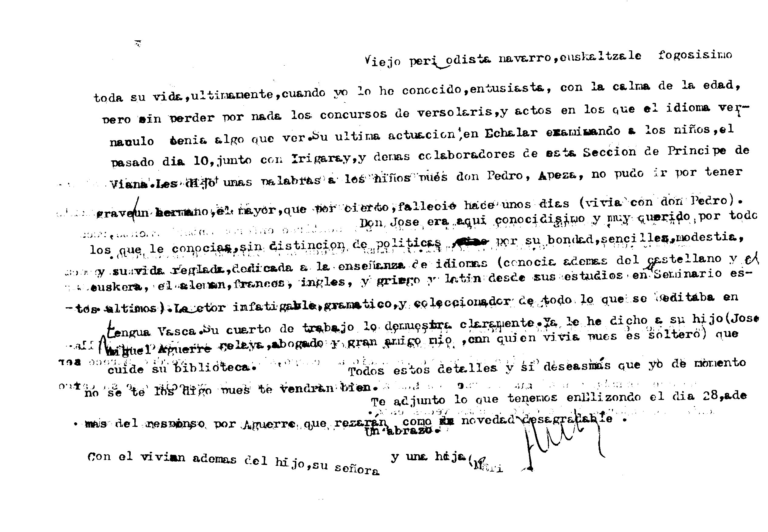 Euskaltzaindia. Gutunak: Ulzurrunen gutuna Agerreren heriotzaren berri emanaz