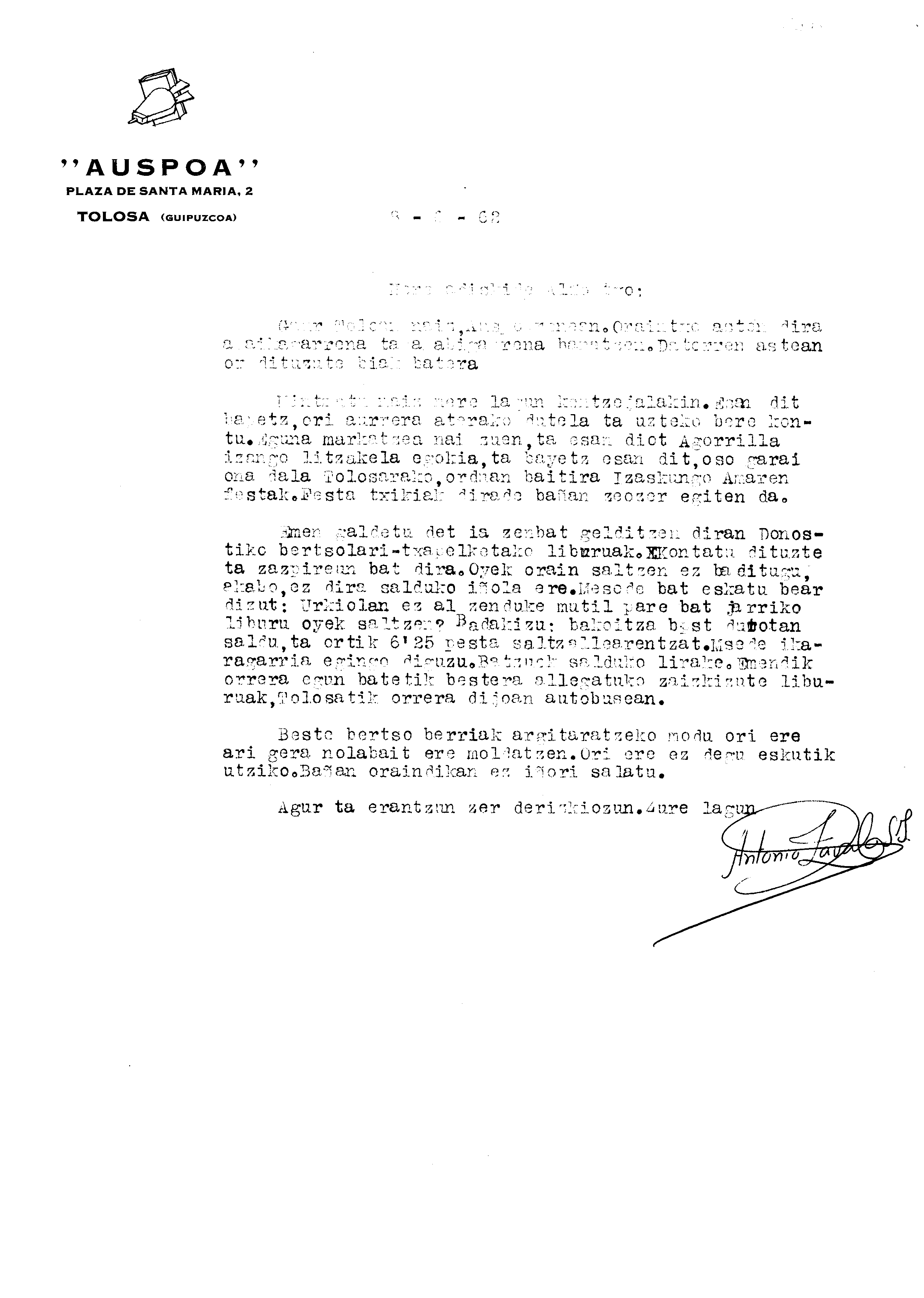 Euskaltzaindia. Gutunak: Zavalaren gutuna Auspoako liburuei buruz