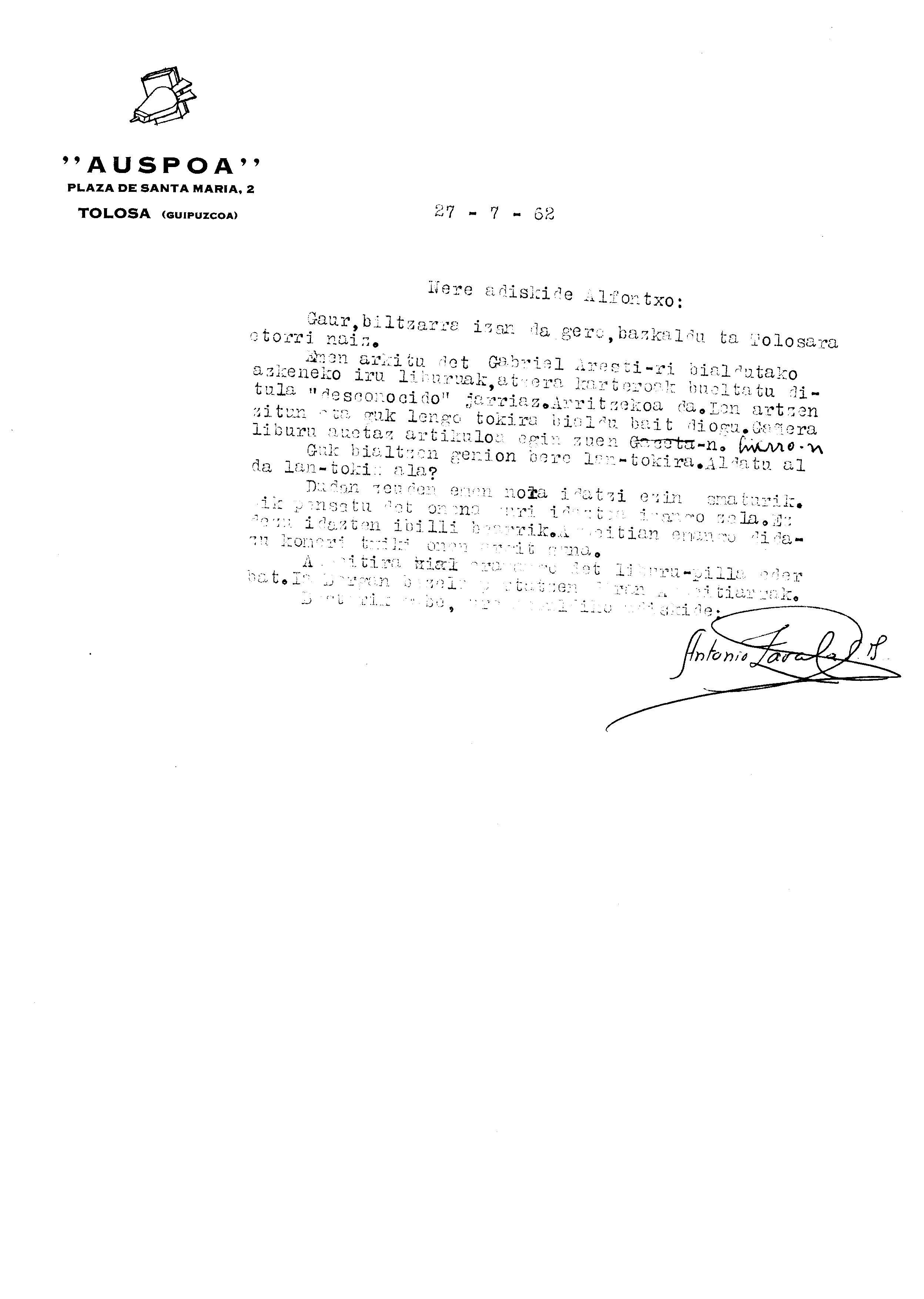 Alfonso Irigoienen Artxiboa > Euskaltzaindia > Korrespondentzia