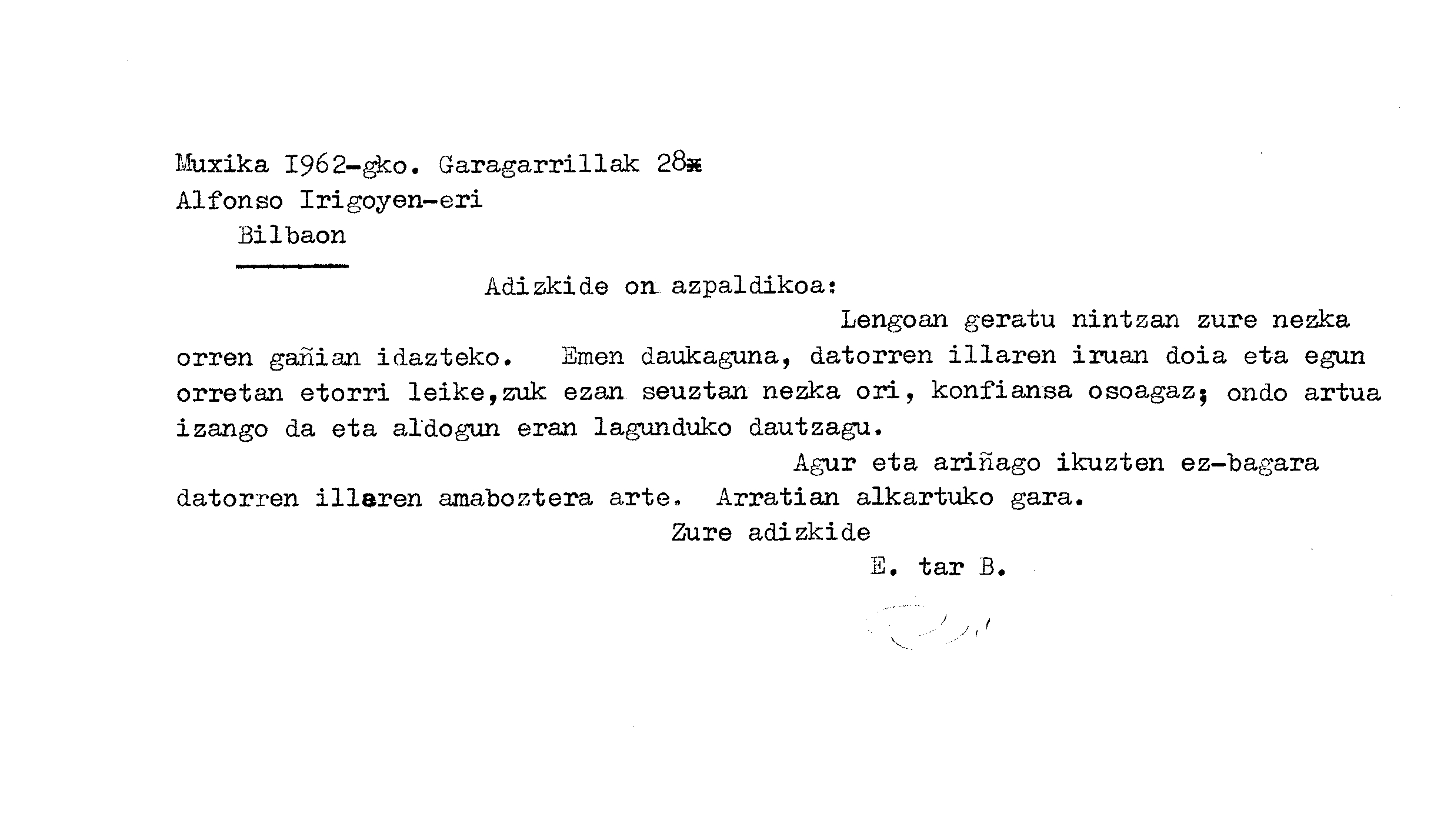 Alfonso Irigoienen Artxiboa > Euskaltzaindia > Korrespondentzia