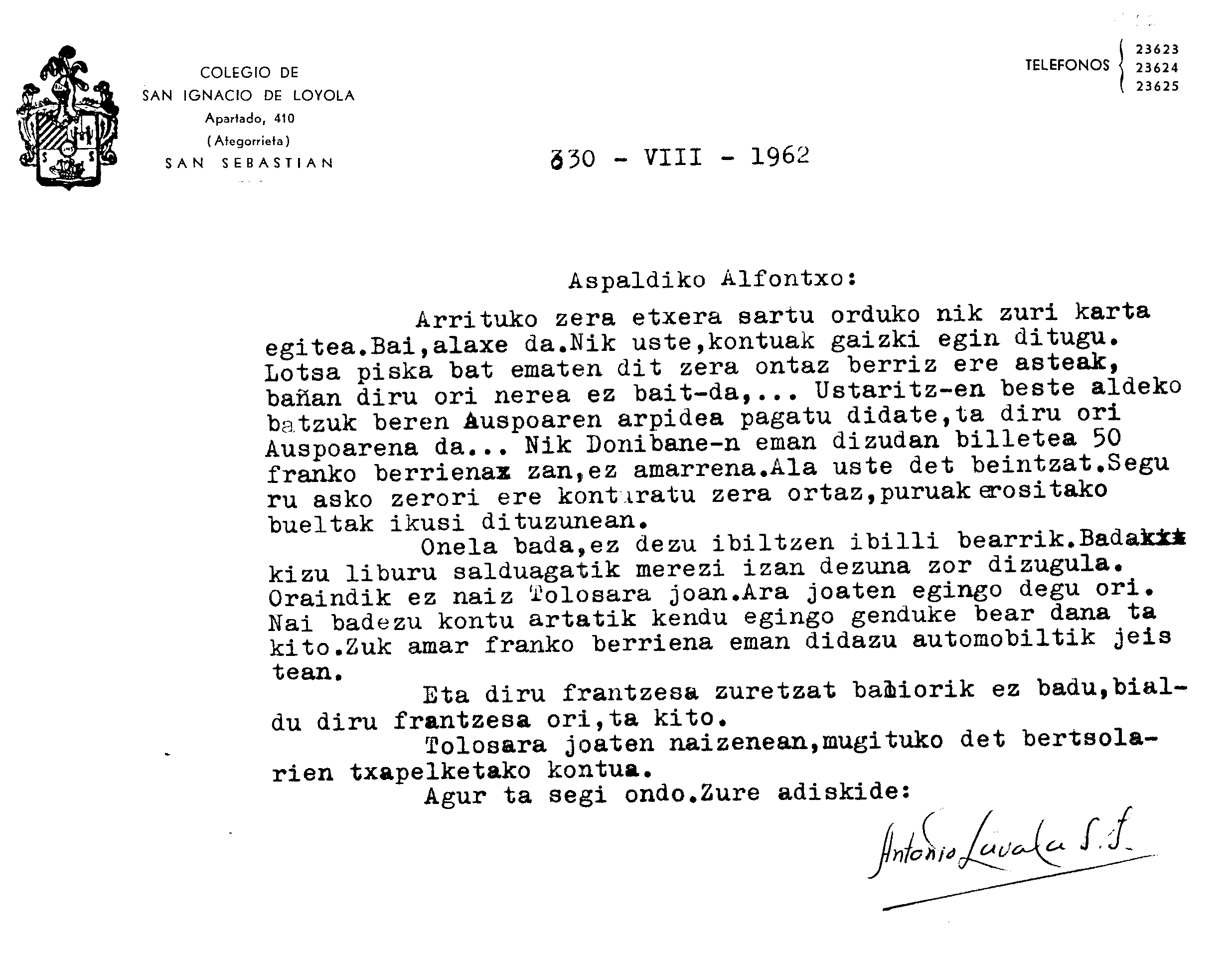 Alfonso Irigoienen Artxiboa > Euskaltzaindia > Korrespondentzia