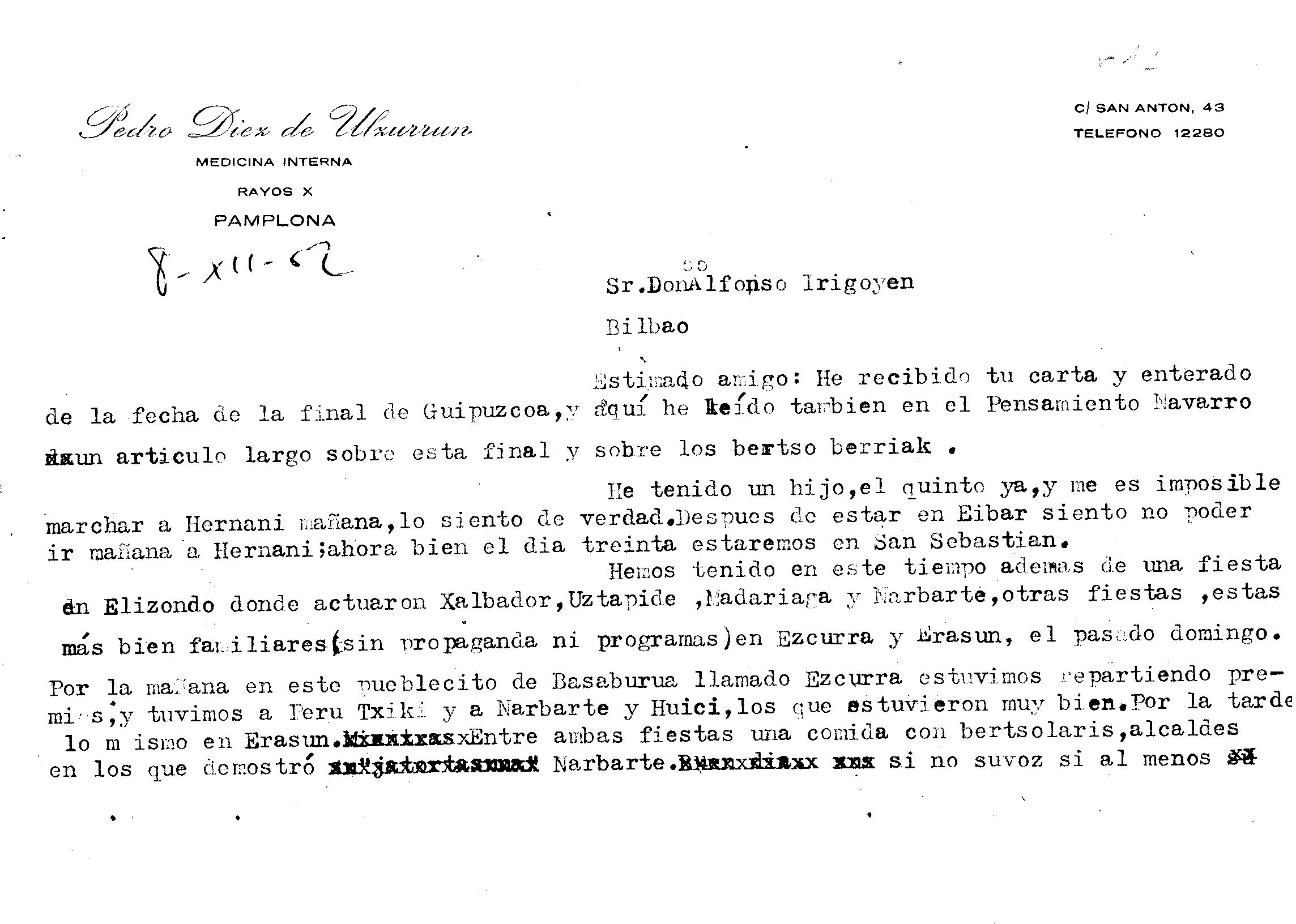 Alfonso Irigoienen Artxiboa > Euskaltzaindia > Korrespondentzia