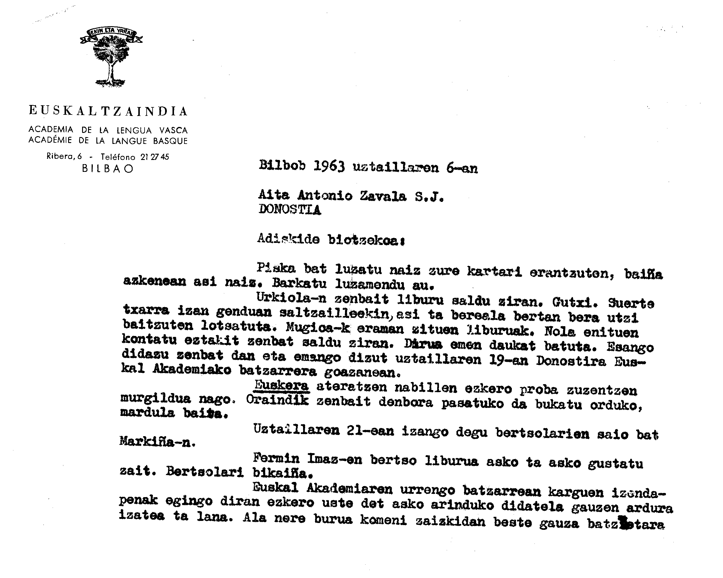 Alfonso Irigoienen Artxiboa > Euskaltzaindia > Korrespondentzia