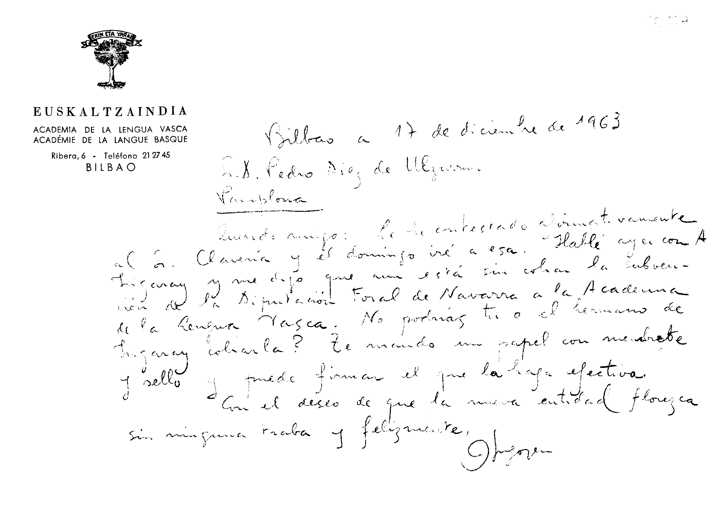 Alfonso Irigoienen Artxiboa > Euskaltzaindia > Korrespondentzia