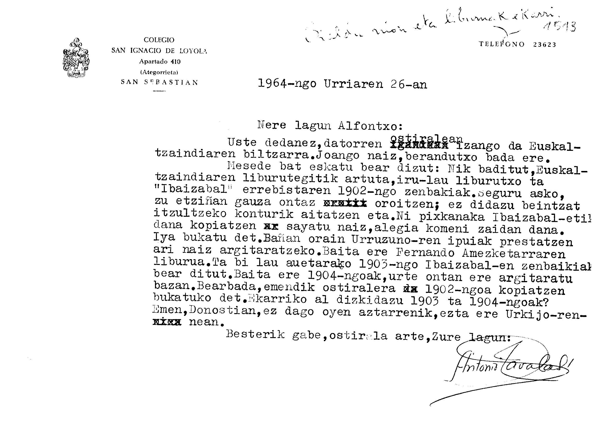 Alfonso Irigoienen Artxiboa > Euskaltzaindia > Korrespondentzia