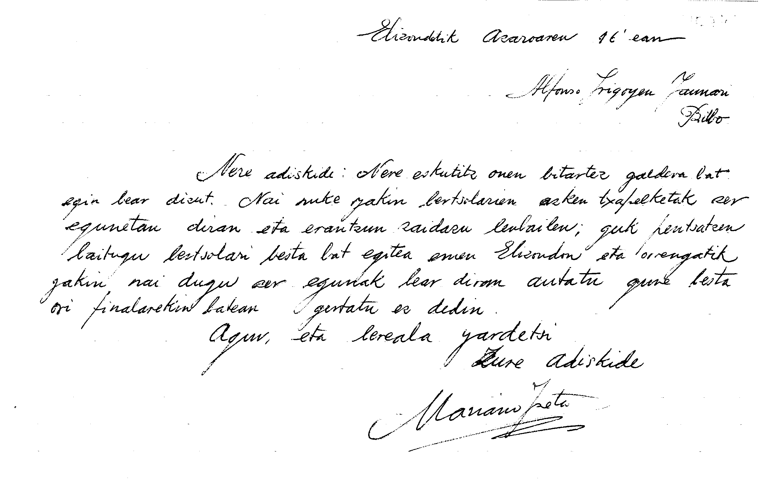 Alfonso Irigoienen Artxiboa > Euskaltzaindia > Korrespondentzia