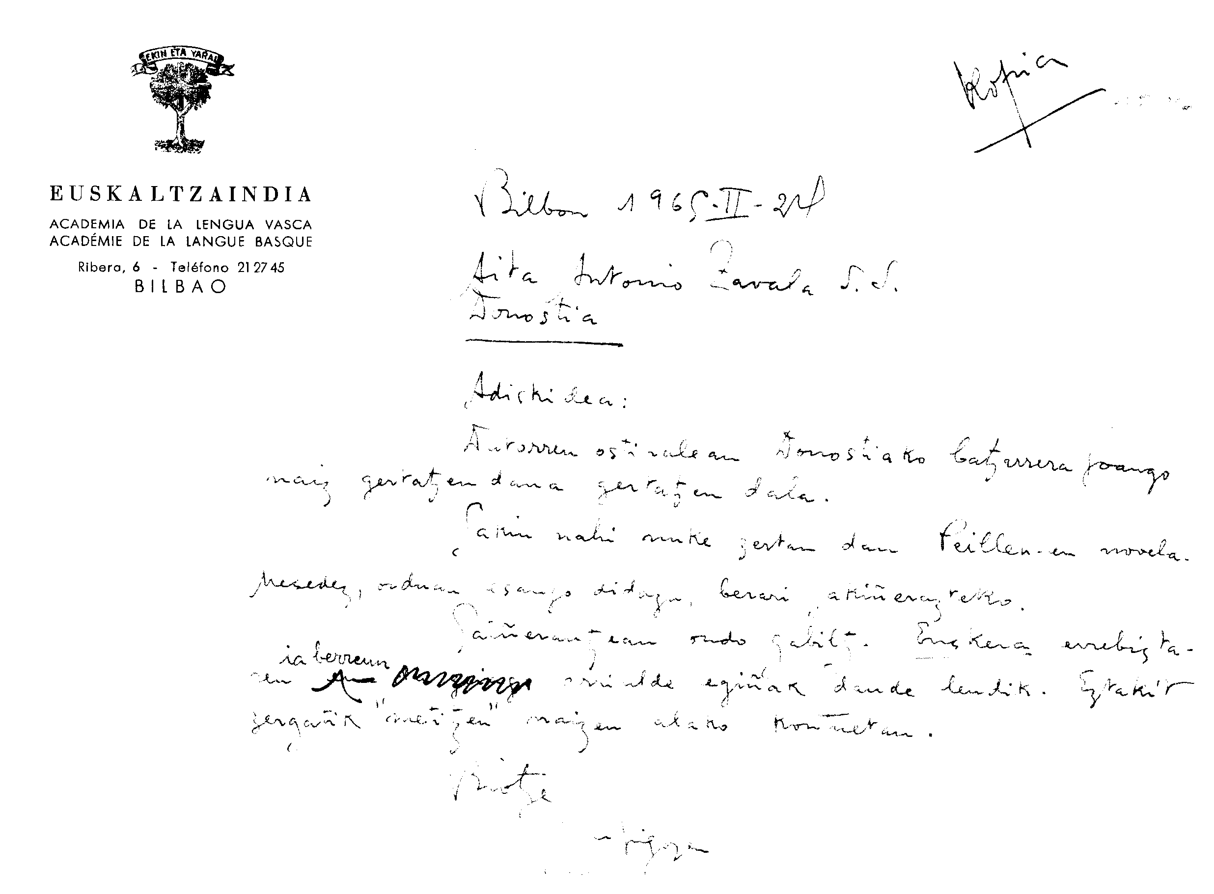 Alfonso Irigoienen Artxiboa > Euskaltzaindia > Korrespondentzia