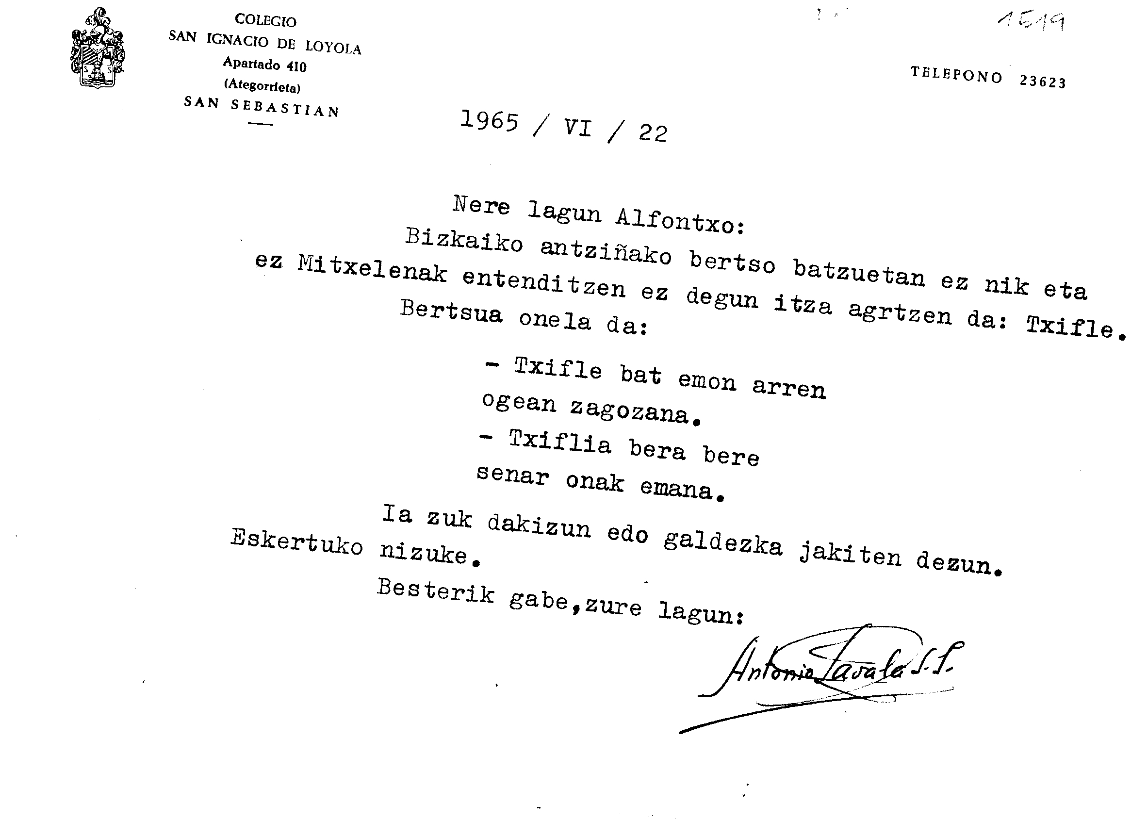 Alfonso Irigoienen Artxiboa > Euskaltzaindia > Korrespondentzia