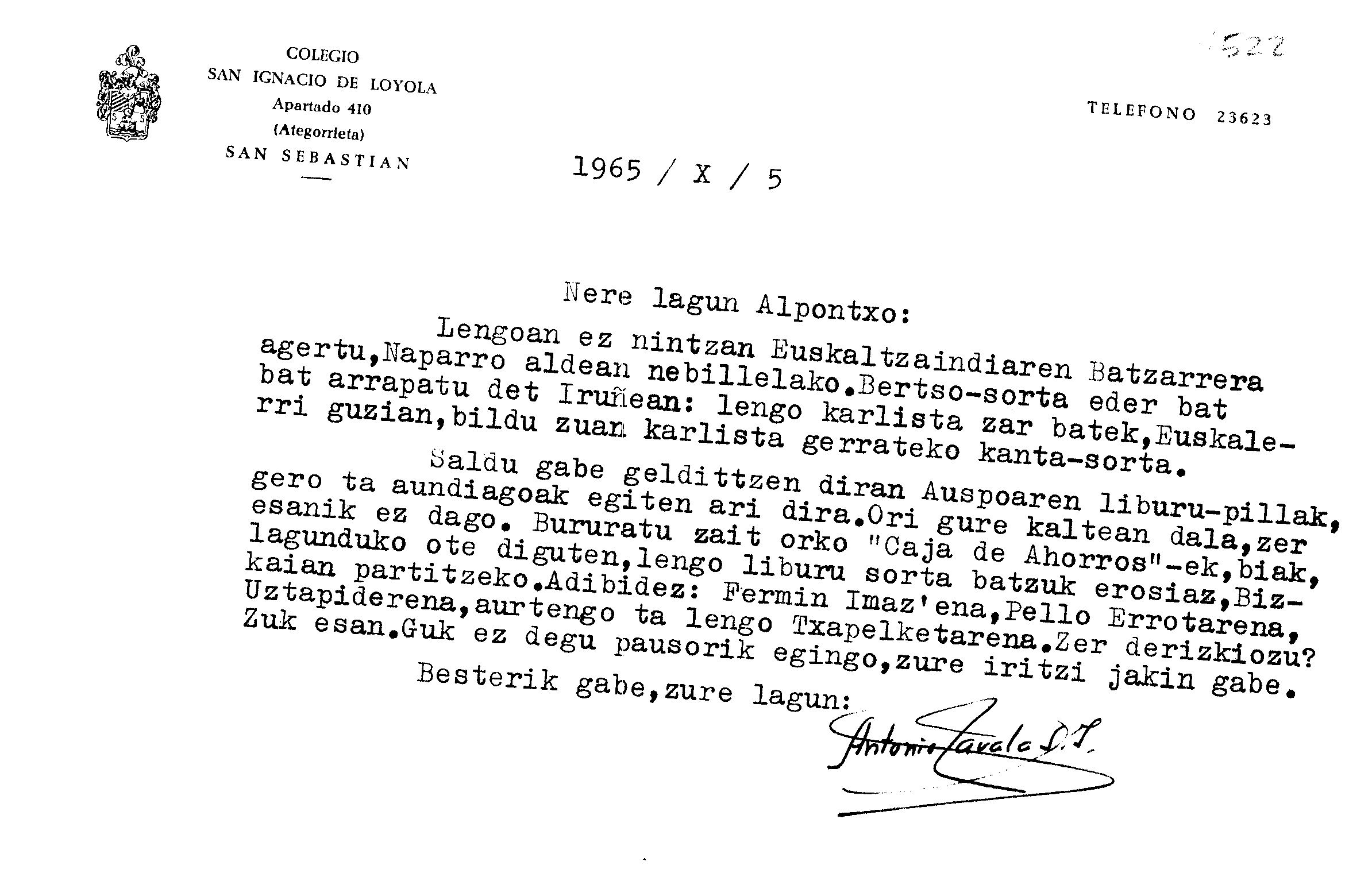 Alfonso Irigoienen Artxiboa > Euskaltzaindia > Korrespondentzia