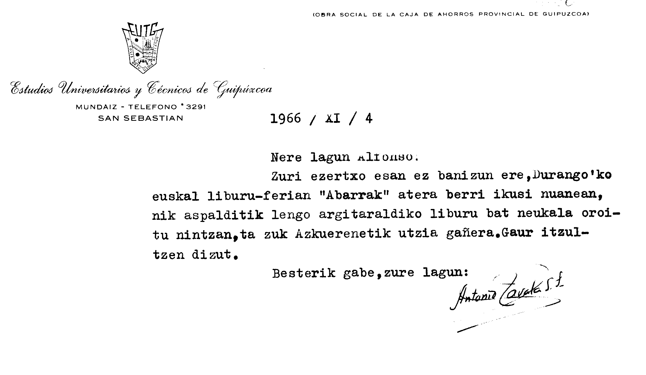 Euskaltzaindia. Gutunak: Zavalaren gutuna liburu bat itzultzeko