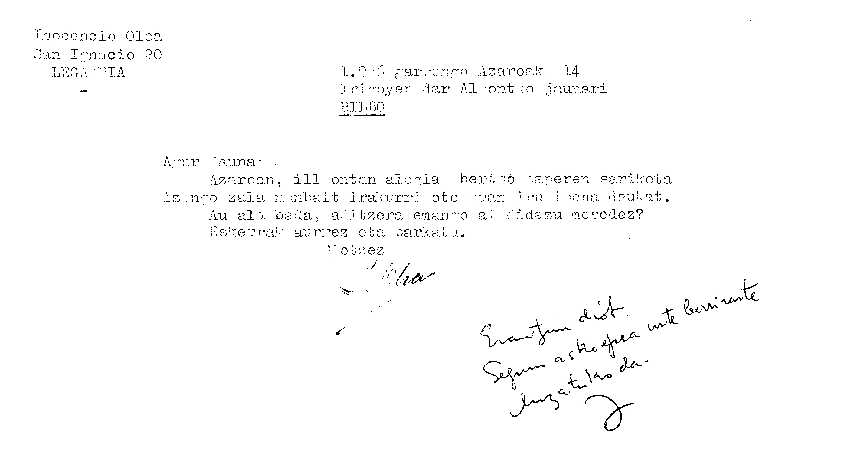 Alfonso Irigoienen Artxiboa > Euskaltzaindia > Korrespondentzia
